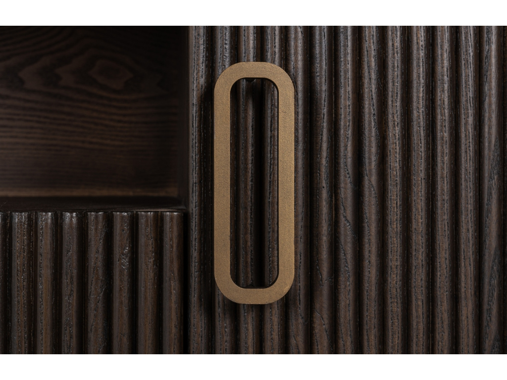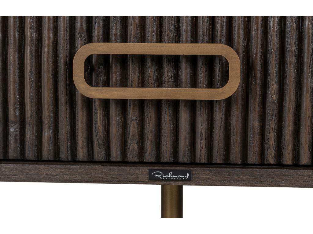 Unikátní design - je vystihující popis celkového vzhledu TV stolku Luxor od značky Richmond Interiors. Oválné tělo, žebrovaný design a teplo dubového dřeva perfektně souzní v kombinaci s kovovými úchyty a subtilní podnoží ve zlaté barvě. Tento kousek doladí interiéry v moderním a skandinávském stylu. Zkombinujte nábytek z kolekce Luxor a vytvořte si tak dokonale sjednocený styl vašeho domova.