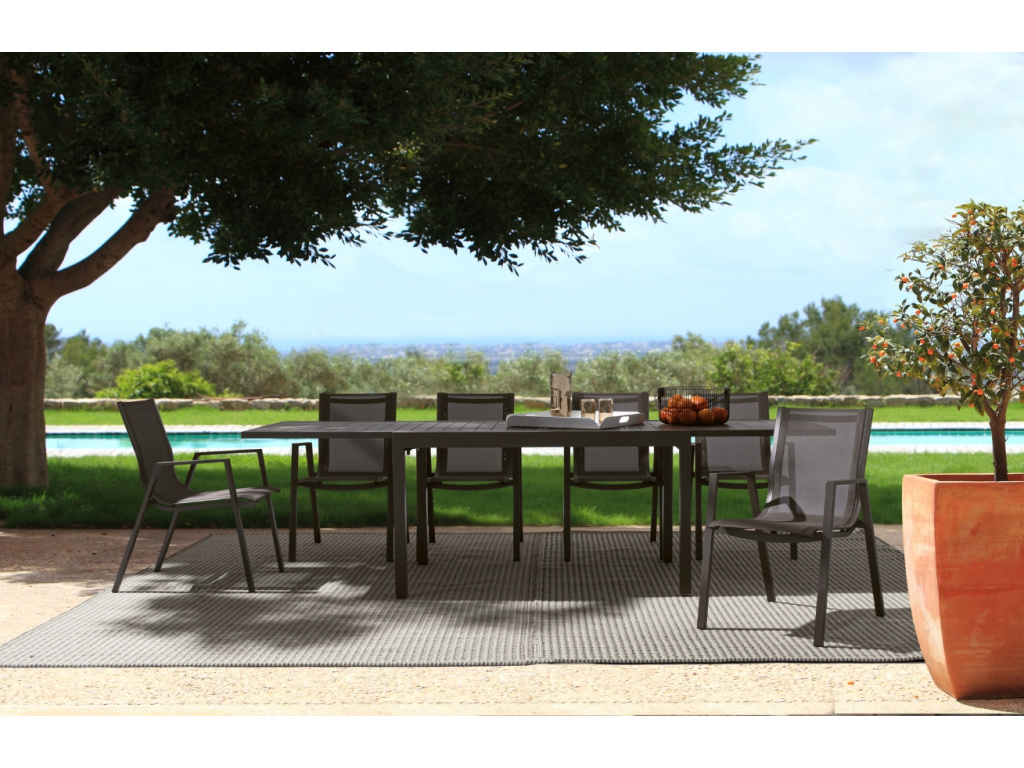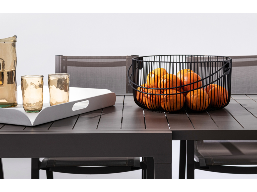 Designový rozkládací jídelní stůl Pelagius od italské značky Bizzotto je praktickým pomocníkem na vaši zahradu či terasu. Kvalitní zpracování z lakovaného kovu zajišťuje vysokou stabilitu a jednoduchou údržbu. Až dorazí vaše rodina či přátelé posedět u dobrého jídla a pití, jistě oceníte možnost rozložit stůl a zvětšit jeho plochu na dvojnásobek původní šířky. Potěší vás jistě také nastavitelné nohy, se kterými snadno ustavíte stůl i na nerovném povrchu. Stůl Pelagius nabízíme ve dvou atraktivních barvách a praktických rozměrech.