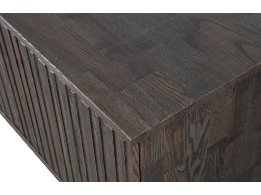 Designový TV stolek Gravia z jasanového dřeva mořeného v odstínu espresso od značky Hoorns je výjimečný kus nábytku inspirován moderními trendy. Charakteristickou vlastností stolku Gravia je moderní design dvířek s žebrovaným vzorem se zavíracím systémem Soft close. Hřejivý vzhled stolku Gravia skvěle zapadne do interiérů ve skandinávském a rustikálním stylu. Stolek disponuje úložným prostorem čtyř polic. Vyberte si i z dalších produktů ze série Gravia a doveďte tak svůj interiér k dokonalosti.