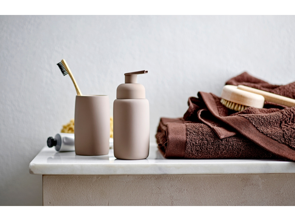 Jednoduchý stojan na zubní kartáčky Mono od dánské značky Södahl bude slušet každé moderní minimalistické koupelně. Stojan je vyrobený z odolné kameniny s matným pogumovaným povrchem v neutrální hnědé barvě, která vynikne ve světlém i barevném interiéru. Hladký povrch a monochromatická barva utváří jednotný design, který můžete umocnit spolu s dalšími koupelnovými doplňky z kolekce Mono.