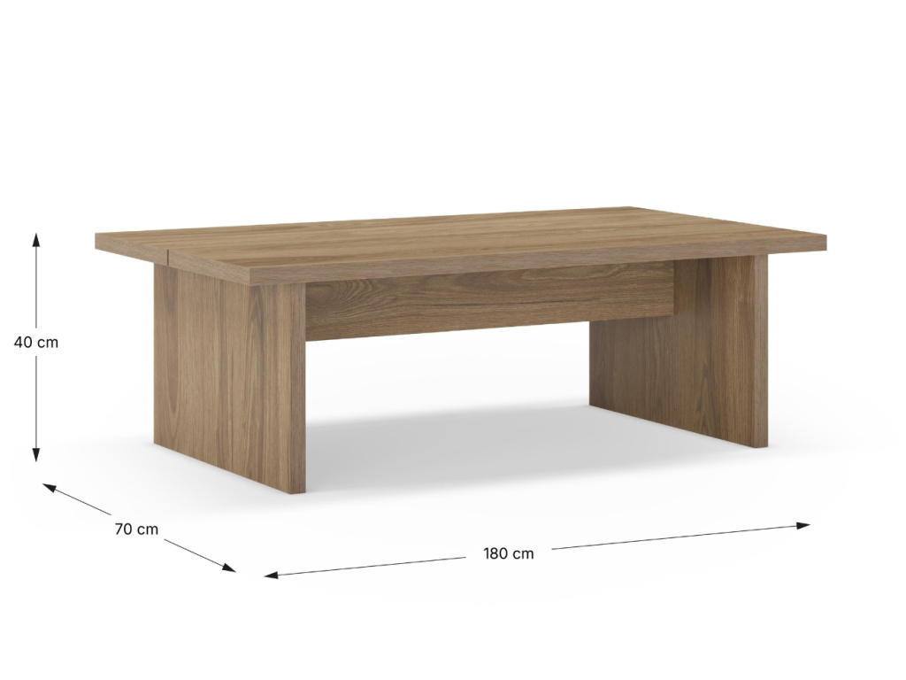 Konferenční stolek Loana zaujme svým věrně imitujícím dubovým dekorem v teple hnědém tónu, který interiéru dodá hřejivou atmosféru. Je vyroben z kvalitních melaminových desek a k dispozici je ve třech barevných variantách. Praktickým bonusem je možnost sladit ho se stejnou variantou jídelního stolu ze stejné kolekce. Skvěle zapadne do interiérů ve stylu japandi nebo nordic.