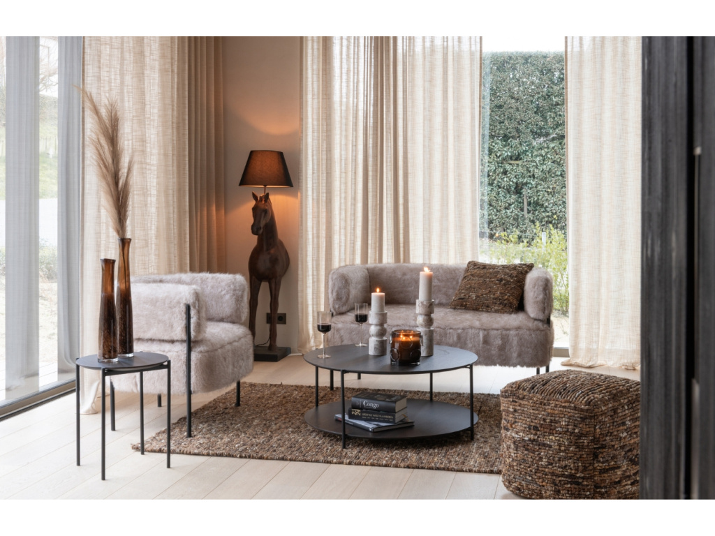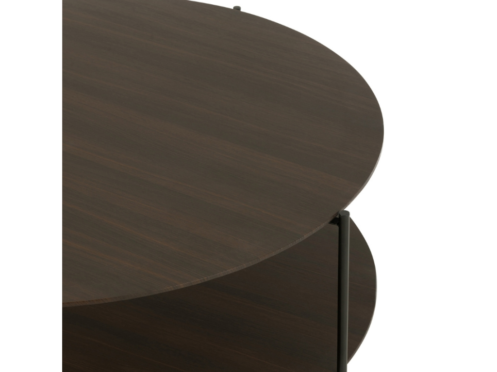 Konferenční stolek Marcus je ztělesněním moderní elegance, která zároveň klade důraz na praktičnost. Jeho minimalistický kovový rám v černém matném provedení nese dvě kruhové desky, čímž vytváří harmonickou rovnováhu mezi designem a funkčností. Díky nadčasovému vzhledu se skvěle hodí nejen do moderních interiérů, ale i do těch, které jsou laděny v přírodním stylu. Spodní police stolku nepřináší jen další úložný prostor, ale zároveň přispívá k vyváženému celkovému dojmu. Nejlépe vynikne v kombinaci s teplými texturami a přírodními materiály, jako je dřevo, len nebo vlna. Tento nápaditý kousek se tak snadno stane stylovým středobodem vašeho obývacího prostoru.