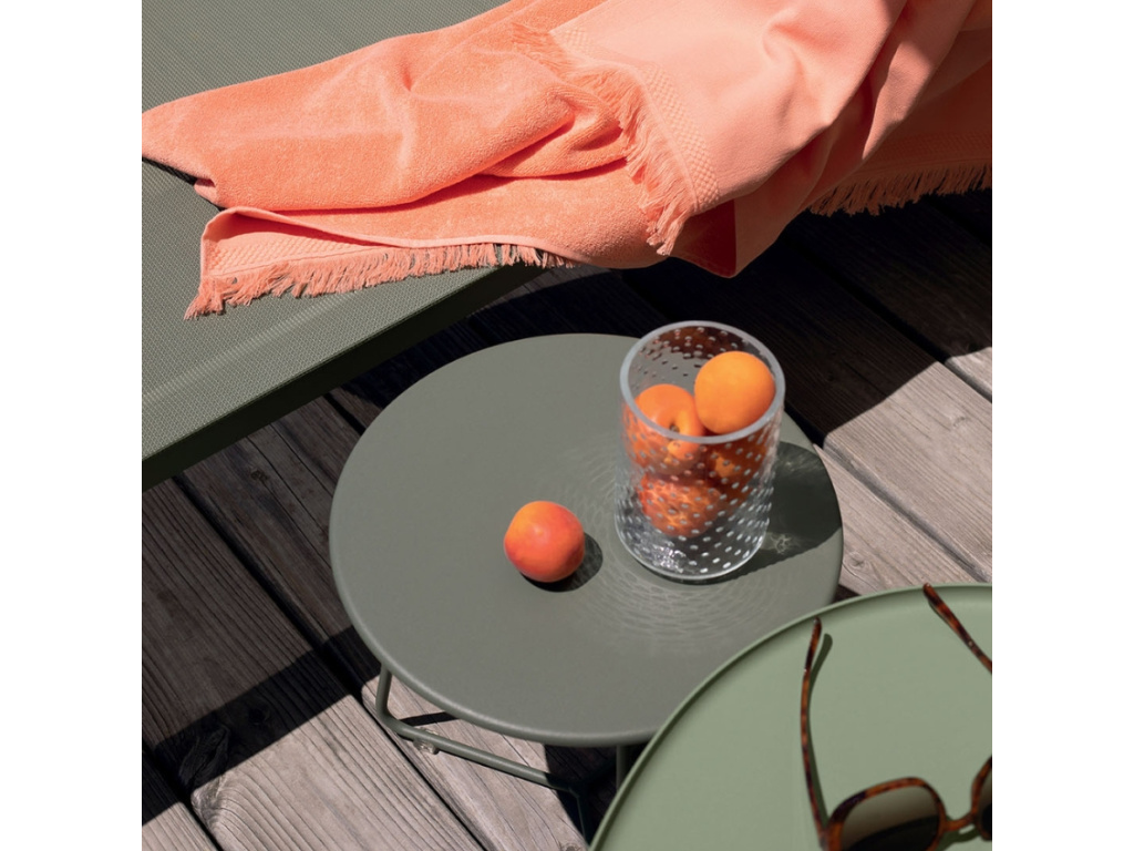 Celokovový odkládací stolek Fermob Cocotte je dostupný v široké škále barev Fermob, díky čemuž se může snadno stát stylovým kouskem nábytku ať už u bazénu, na terase nebo dokonce v obývacím pokoji. Má perfektní rozměry pro odložení nápoje a rozečtené knihy, ale také k umístění rostlin a designové venkovní lampy. Je vyráběn z prvotřídních materiálů a testován tak, aby splňoval standardy kvality evropských norem (NF EN 581-1 a NF EN 581-2). Exkluzivní systém antikorozní úpravy pro venkovní použití a anti-UV práškový lak (standardizované testy AFNOR) dělá ze stolku ideálního společníka.