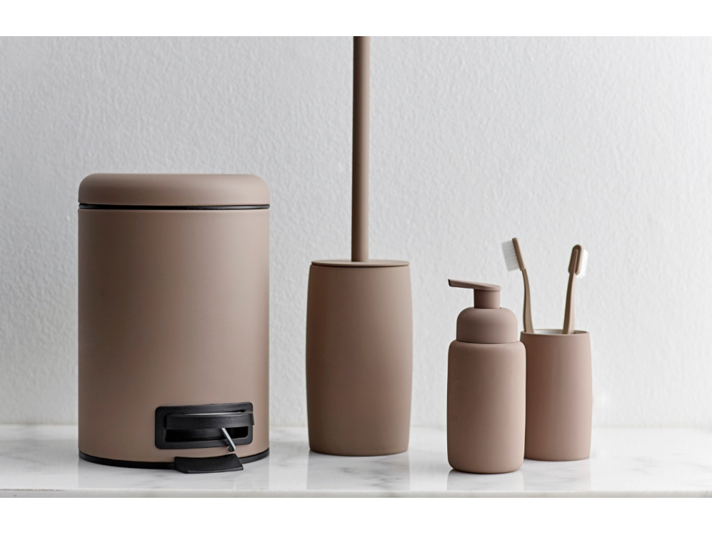Praktický koupelnový odpadkový koš Mono od dánské značky Södahl bude slušet každé moderní minimalistické koupelně. Koš je vyroben z kovu s matným pogumovaným povrchem v neutrální hnědé barvě, která vynikne ve světlém i barevném interiéru. Hladký povrch a monochromatická barva utváří jednotný design, který můžete umocnit spolu s dalšími koupelnovými doplňky z kolekce Mono. Koš disponuje šikovným pedálem, zavíracím systémem soft-close a plastovým kbelíkem, který lze kdykoliv vyjmout a vynést či vyčistit.