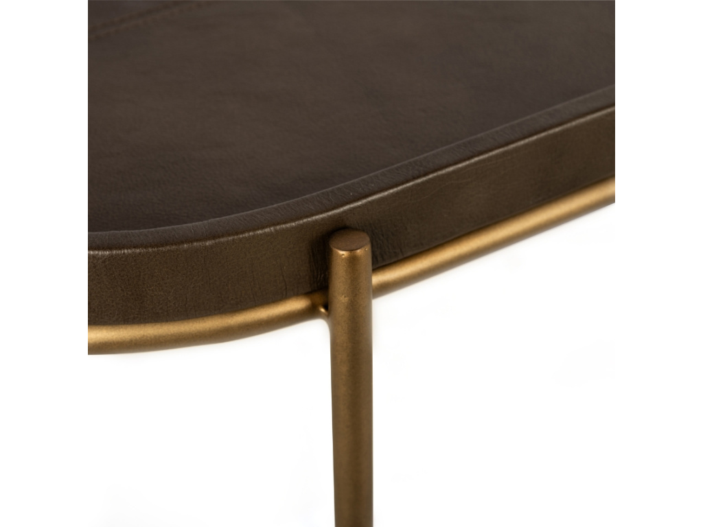 Značka Richmond přináší stylový toaletní stolek Zillon s deskou vyrobenou z MDF potaženou luxusní hnědou kůží. Její okraj je vyvýšený, takže vám ze stolku nic nespadne. Celkový vzhled dotváří kovová konstrukce podnože lakovaná ve starozlaté barvě. Zillon se stane vaším praktickým společníkem při chvílích, kdy budete pečovat o váš zevnějšek. Zkombinujte jej s dalšími kousky ze stejné řady a sjednoťte tak vzhled vašeho domova.