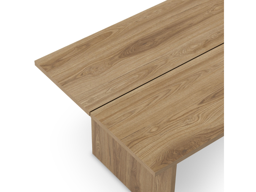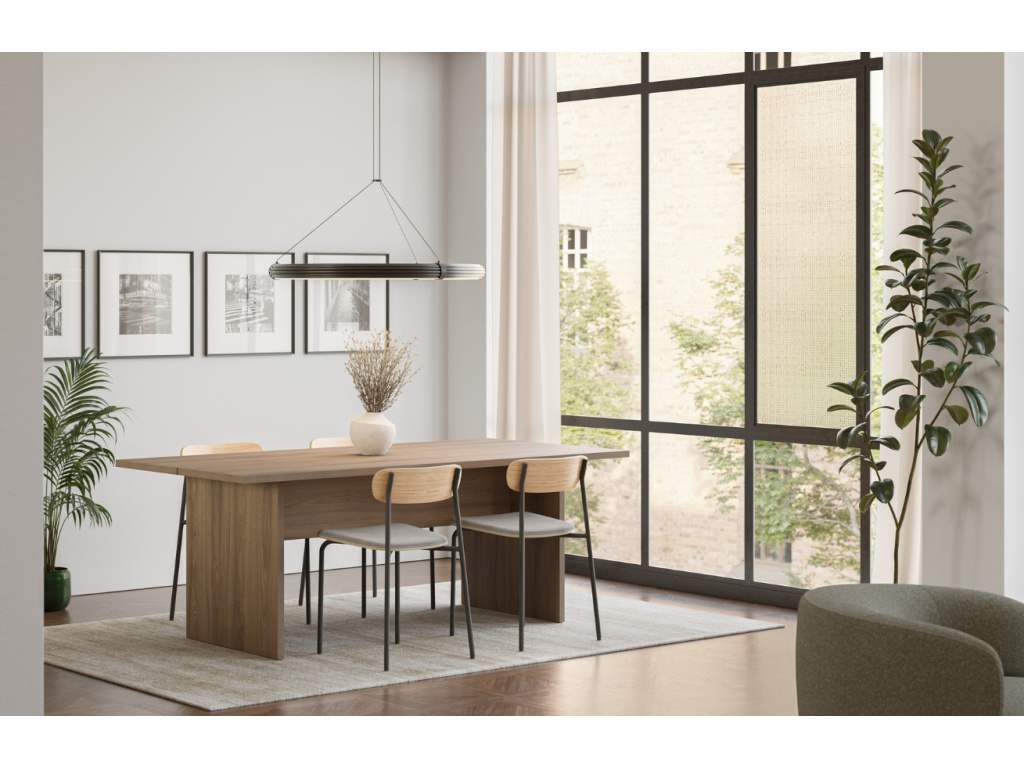 Jídelní stůl Loana s dubovým dekorem od značky Marckeric vnáší do interiéru hřejivou atmosféru a pocit útulného domova. Jeho obdélníkový tvar a prostorná deska z odolného melaminu zajišťují pohodlné stolování až pro šest osob. Hnědý povrch s výraznou strukturou podtrhuje přirozenou krásu a jednoduchost skandinávského stylu. K dispozici je ve třech barevných provedeních, díky nimž snadno zapadne do různých typů interiérů. Praktickým bonusem je možnost sladit ho se stejnou variantou konferenčního stolku.