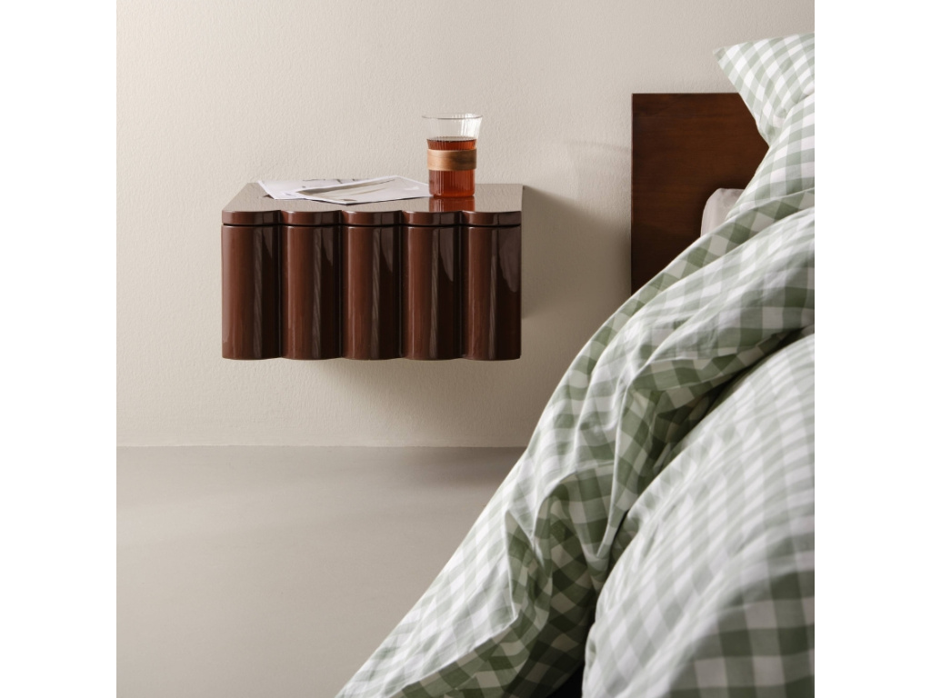 Závěsný noční stolek VALLMO je důkazem, že i praktické prvky mohou být stylové a elegantní. Jeho čistý, moderní design s výraznými liniemi a lesklým povrchem přináší do ložnice hravost. Díky montáži na zeď nepůsobí těžce a zároveň šetří místo, což oceníte zejména v menších prostorech. Stolek nabízí úložný prostor v podobě jedné zásuvky, kterou využijete pro odložení knih, telefonu nebo drobností, které chcete mít po ruce, ale ne na očích. VALLMO zkrátka dodá vaší ložnici elegantní, moderní nádech! Dostupný je také v béžové barvě.