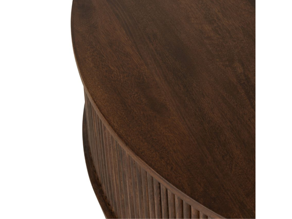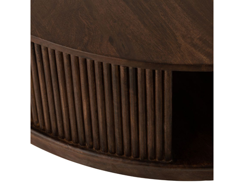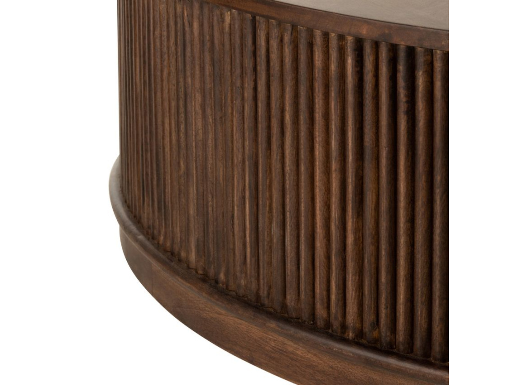Konferenční stolek Trana od značky J-Line z mangového dřeva je perfektním doplňkem do obývacího pokoje. Kulatý korpus s efektem skládaného dřeva zaujme na první pohled. Stolek nabízí velkou plochu pro odložení nápojů, občerstvení a také pro uspořádání oblíbených dekorací. Spodní, zčásti krytá část, nabízí velkorysé úložné řešení pro knihy, časopisy, ale například také plédy či polštáře. Trana skvěle doplní moderní interiéry s přírodními prvky, v toskánském či rustikálním stylu.