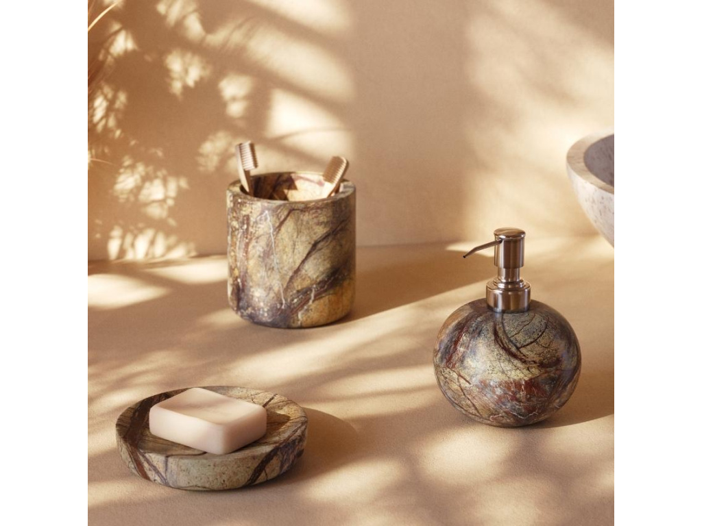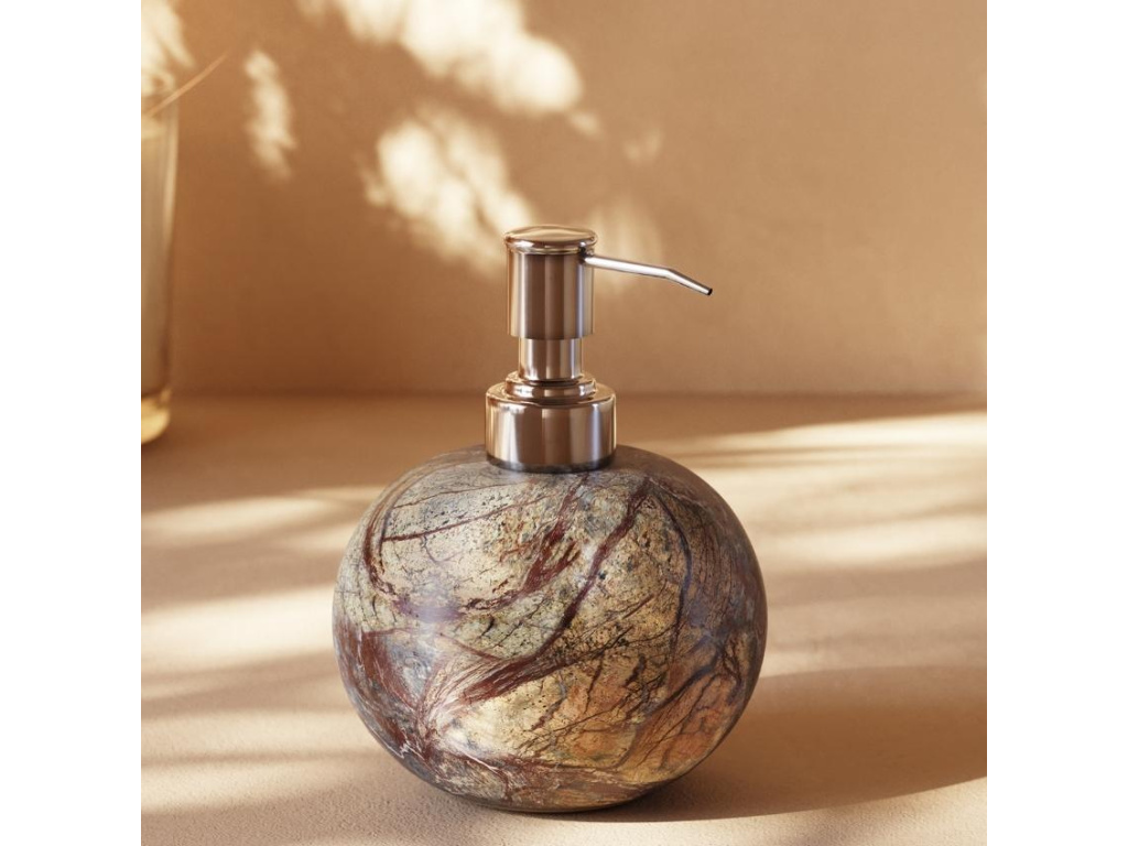 Jedinečná textura mramorového dávkovače Spalsh je krásným prvkem do každé koupelny. Dávkovač na mýdlo od značky Kave Home je z nové exkluzivní kolekce. Krásné přírodní tóny dávkovače, který je vyroben z jednoho kusu kamene, rozzáří a doladí celý interiér.