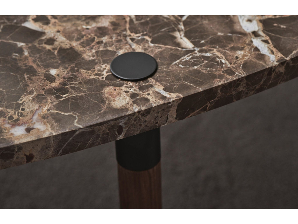 To chciHnědý mramorový nízký konferenční stolek Tuk 71,5 x 52 cm s dubovou podnoží