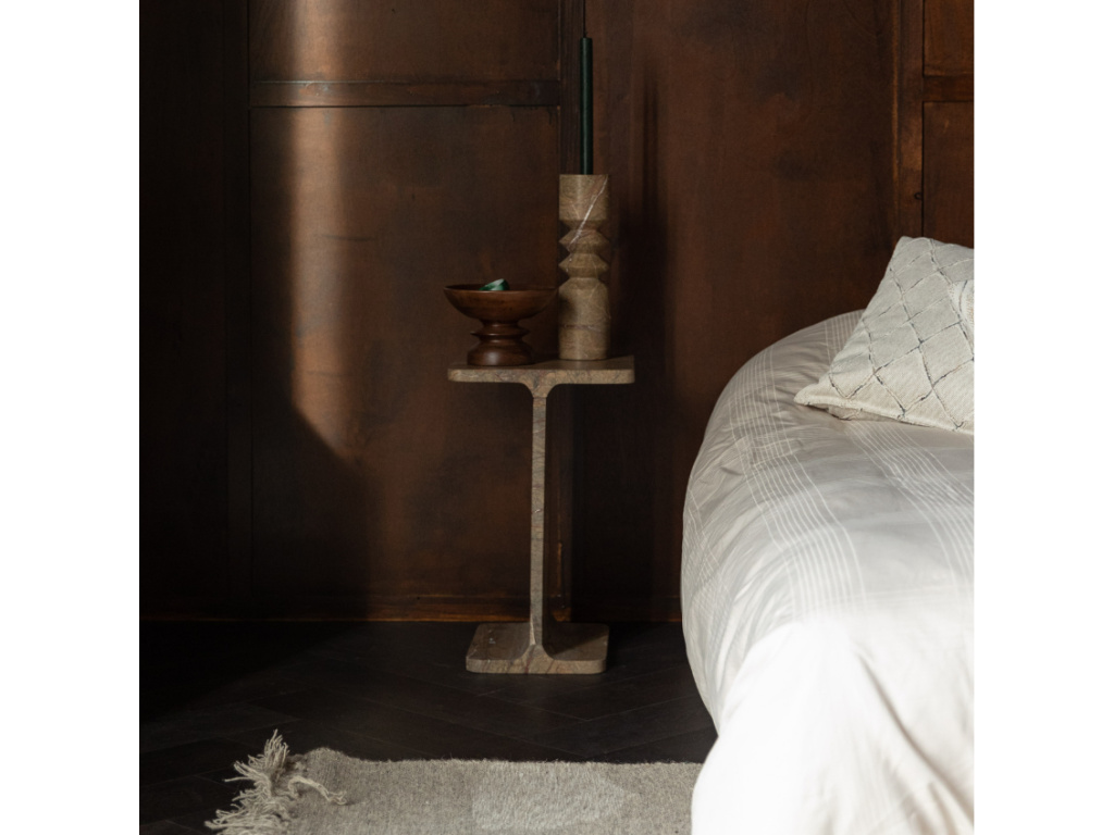 Představujeme vám odkládací stolek SAPTURA od značky DUTCHBONE. Je vyroben z hnědého, žilkovaného mramoru, který k vám domů vnese přírodní prvek. Umístěte ho do obývacího pokoje k pohovce, kde na něm můžete odložit například ovladač od TV, nebo sklenici s nápojem. Využít ho můžete také v ložnici jako noční stolek vedle postele. Výborně doplní váš rustikální interiér, obzvláště pak další designovky z přírodních materiálů. Udělejte si radost tímto mramorovým krasavcem!