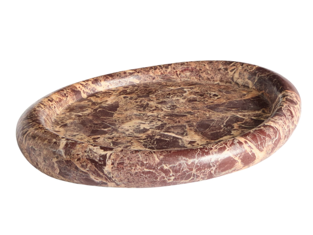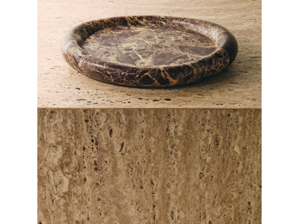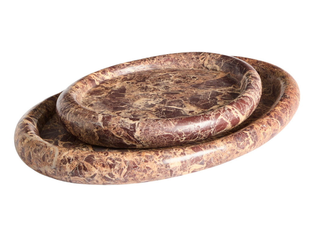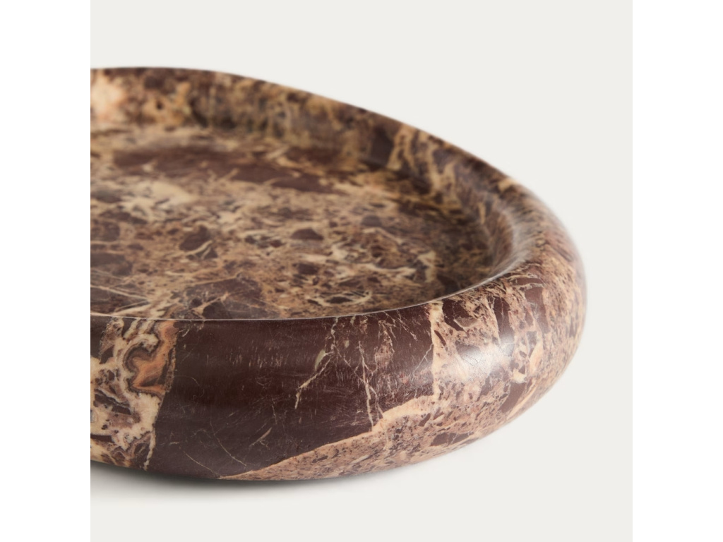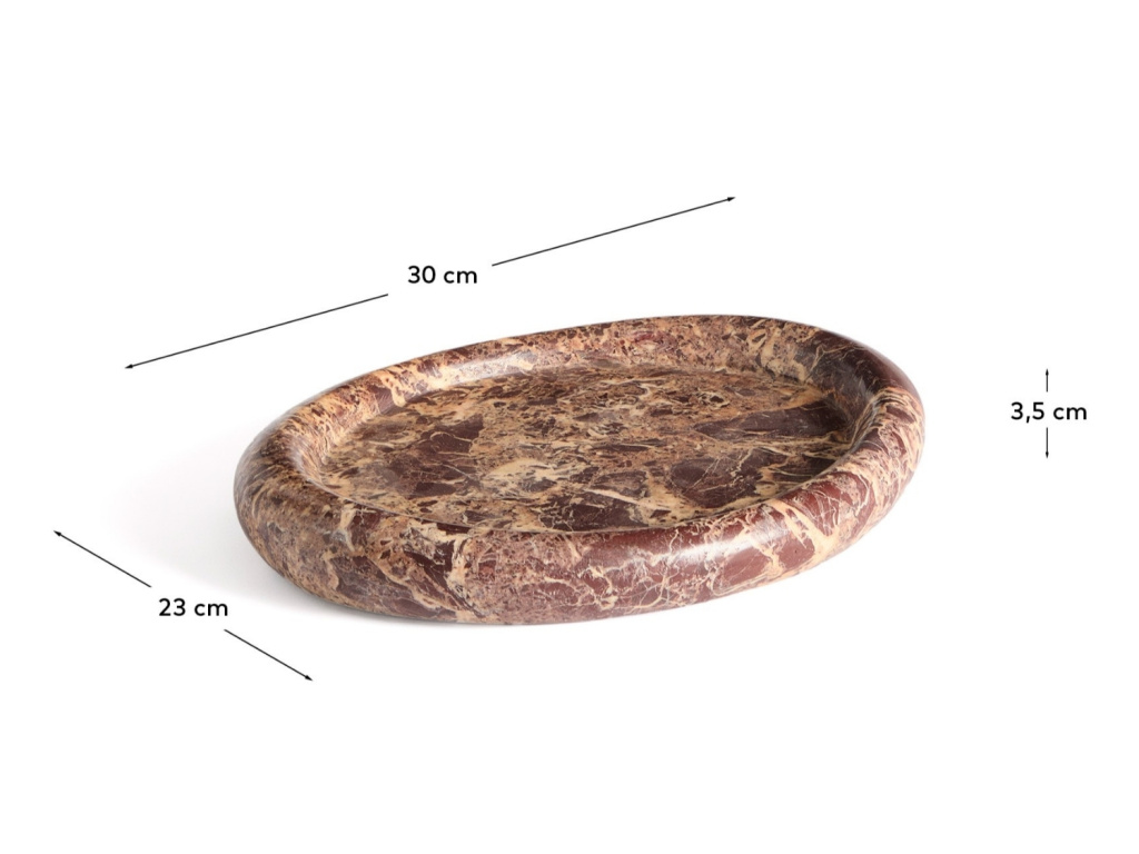 Tác Lenorel z hnědého mramoru je ztělesněním elegance a přirozené krásy kamene. Jeho jemně zaoblené tvary a hladký povrch dodávají interiéru luxusní, ale harmonický akcent. Každý kus je originál, s jedinečnou kresbou žilek a tónů, které podtrhují autenticitu přírodního materiálu. Vynikne například na jídelním stole, ale také jako stylový prvek v koupelně, obývacím pokoji i ložnici, kde poslouží jako podnos pro dekorace, svíčky nebo šperky. Spojení odolnosti mramoru a nadčasového designu dělá z tácu Lenorel doplněk, který přinese do vašeho domova sofistikovaný nádech přírody.