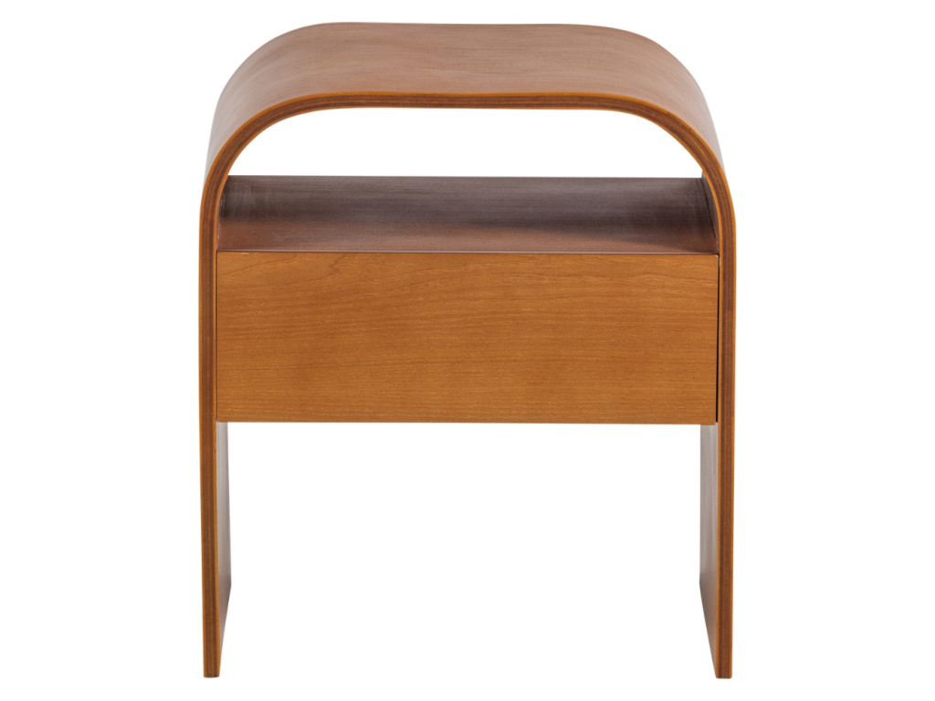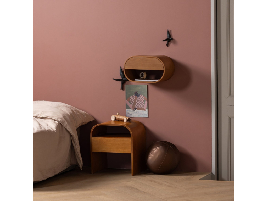 Noční stolek Momo vnese do vaší ložnice hřejivou atmosféru díky svému provedení v útulném hnědém odstínu s jemnou kresbou dřeva. Jeho jednoduchý kulatý design s otevřenou policí nabízí praktické místo pro vše potřebné, zatímco čisté linie působí v prostoru lehce a nerušivě. Tento kousek skvěle zapadne do moderních ložnic v přírodním stylu nebo do minimalistických interiérů, kterým dodá pocit klidu a uspořádanosti.