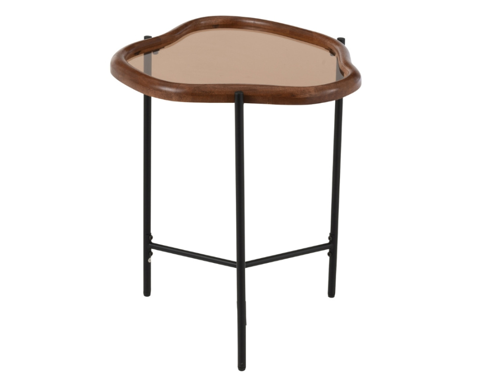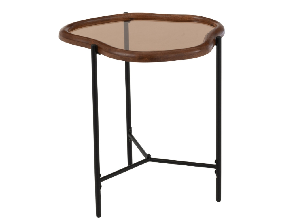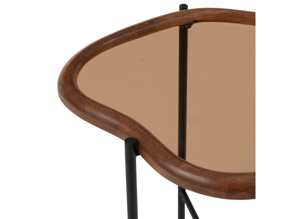 Odkládací stolek Mell zaujme na první pohled svým organickým tvarem. Deska z tónovaného skla je vsazena do dřevěného rámu v příjemném teplém odstínu, což dodává stolku elegantní a zároveň přirozený vzhled. Tento kousek se skvěle hodí vedle pohovky či křesla, ale také jako doplněk do ložnice nebo pracovny, a díky svému designu se stává nejen praktickým pomocníkem, nýbrž i dekorativním prvkem každého interiéru. Je ideální pro odložení kávy, knihy nebo stylového svícnu. Mell je stolkem pro ty, kdo ocení originální design a vkusné detaily.
