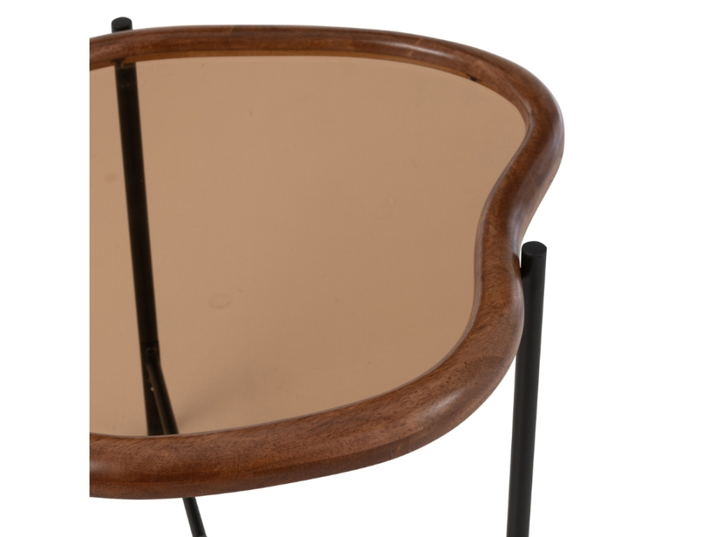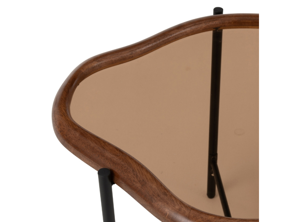 Odkládací stolek Mell zaujme na první pohled svým organickým tvarem. Deska z tónovaného skla je vsazena do dřevěného rámu v příjemném teplém odstínu, což dodává stolku elegantní a zároveň přirozený vzhled. Tento kousek se skvěle hodí vedle pohovky či křesla, ale také jako doplněk do ložnice nebo pracovny, a díky svému designu se stává nejen praktickým pomocníkem, nýbrž i dekorativním prvkem každého interiéru. Je ideální pro odložení kávy, knihy nebo stylového svícnu. Ambesa je stolkem pro ty, kdo ocení originální design a vkusné detaily.