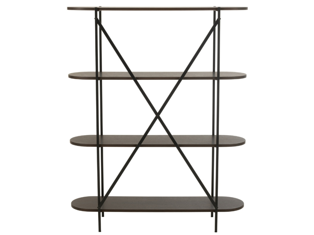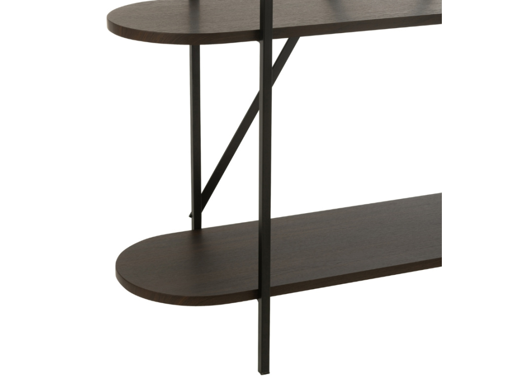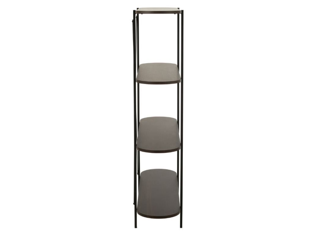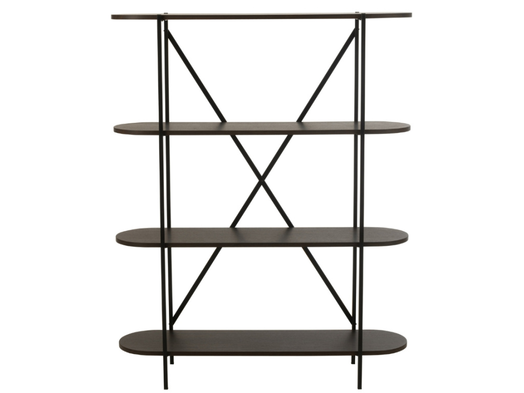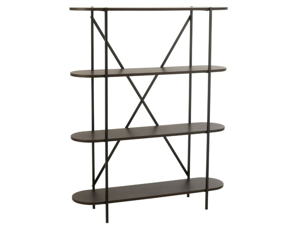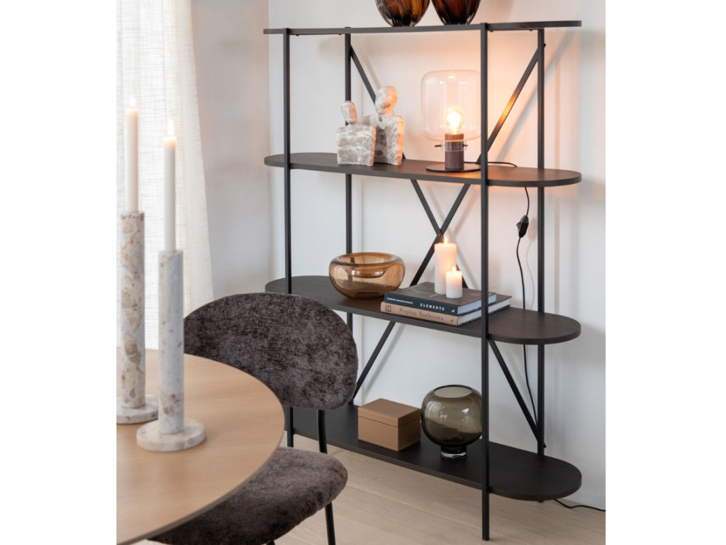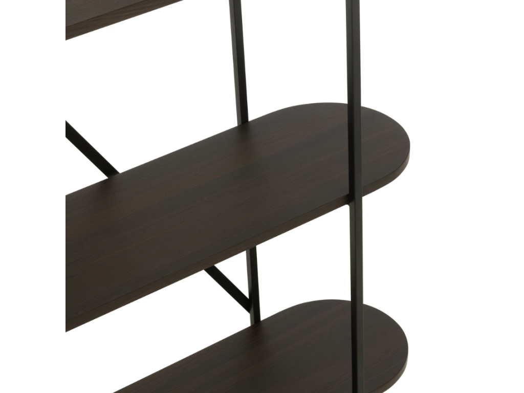 Vneste do svého interiéru lehkost a styl s regálem Oval. Jeho oválné police v tmavém dřevěném dekoru dodají prostoru útulnost, zatímco černá kovová konstrukce zajišťuje pevnost a industriální nádech. Čtyři prostorné police nabízí dostatek místa pro vaše knihy, dekorace či květiny. Čisté linie a minimalistický design podtrhnou krásu každého moderního interiéru. Díky otevřené konstrukci působí regál vzdušně a opticky nezatěžuje prostor. Ať už jej umístíte do obývacího pokoje, jídelny nebo pracovny, v kombinaci s oblíbenými dekoracemi se stane výrazným prvkem vašeho interiéru.