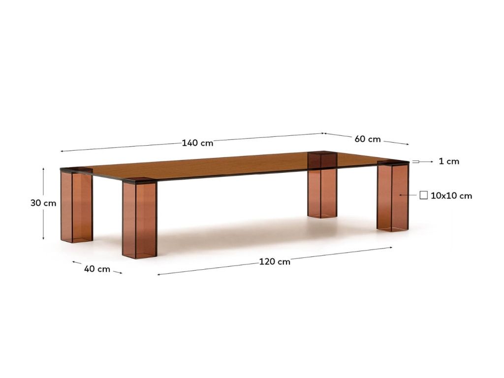 Hnědý skleněný konferenční stolek Kave Home Adularia 140 x 60 cm