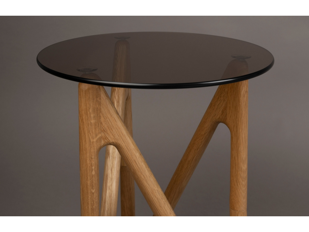 To chciHnědý skleněný odkládací stolek DUTCHBONE NAIA 40 cm s přírodní podnoží