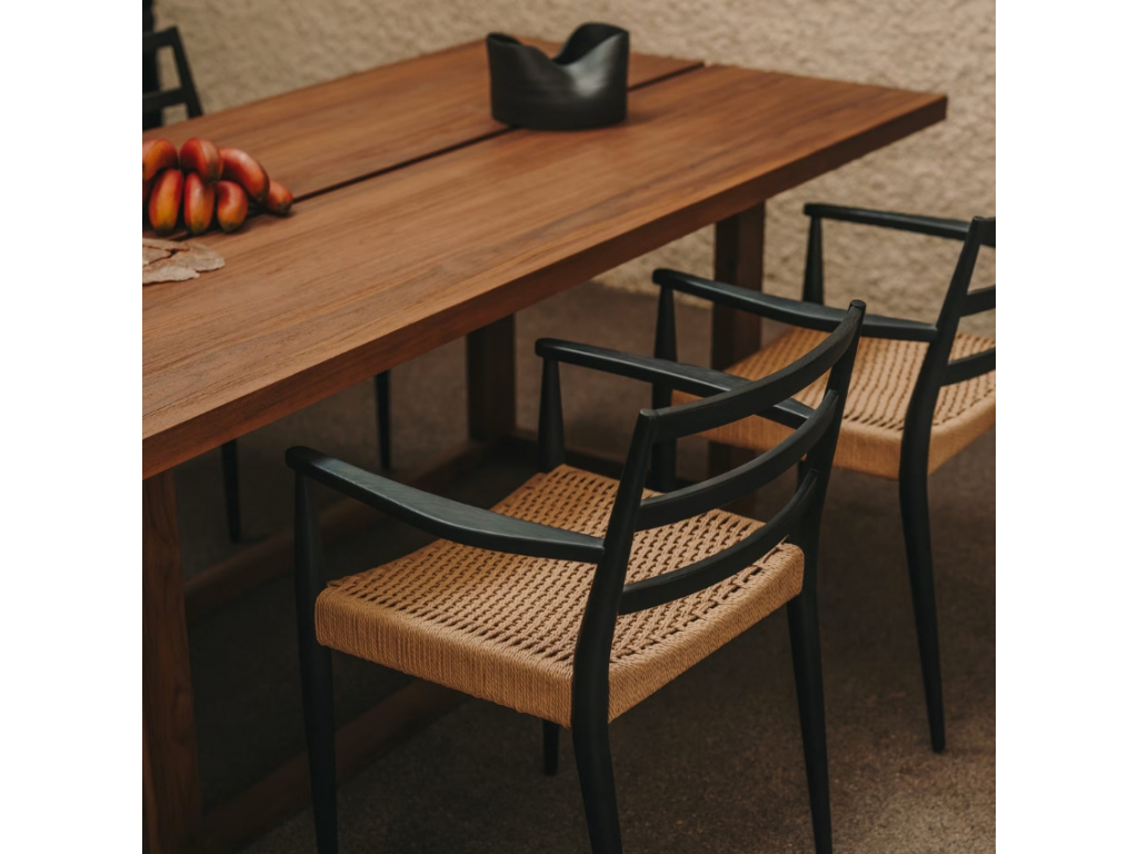 Se sérií nábytku Sashi od značky Kave Home ožívá nadčasová elegance a atraktivní minimalismus. Všechny kousky z této série jsou vyrobeny z masivního teakového dřeva s certifikací FLEGT, jehož povrch je upraven kartáčováním – to zdůrazňuje přirozenost použitého materiálu. Propracovanost a funkčnost se spojili v této stylové sérii, kterou rozhodně stojí za to prozkoumat a případně ji uvítat ve vaší domácnosti. Její součástí je také jídelní stůl, jehož prostorná deska zvládne pohostit až 8 osob. Skvěle se tak hodí do prostornějších jídelen – ocení ho všechny početnější rodiny a milovníci oslav.