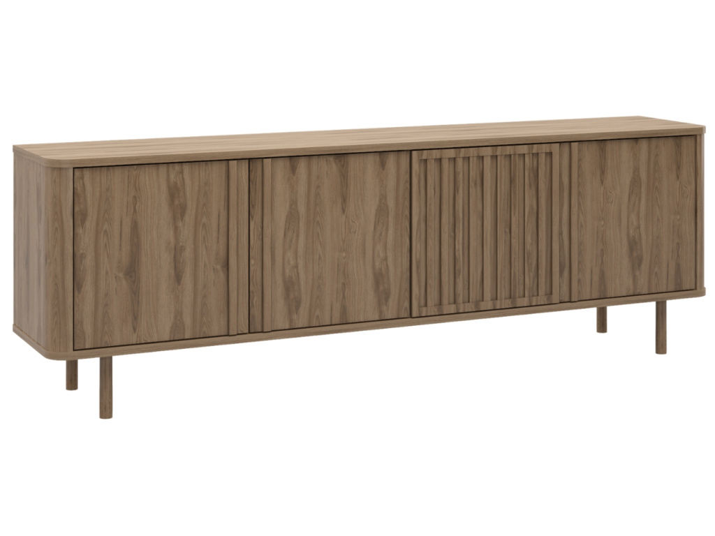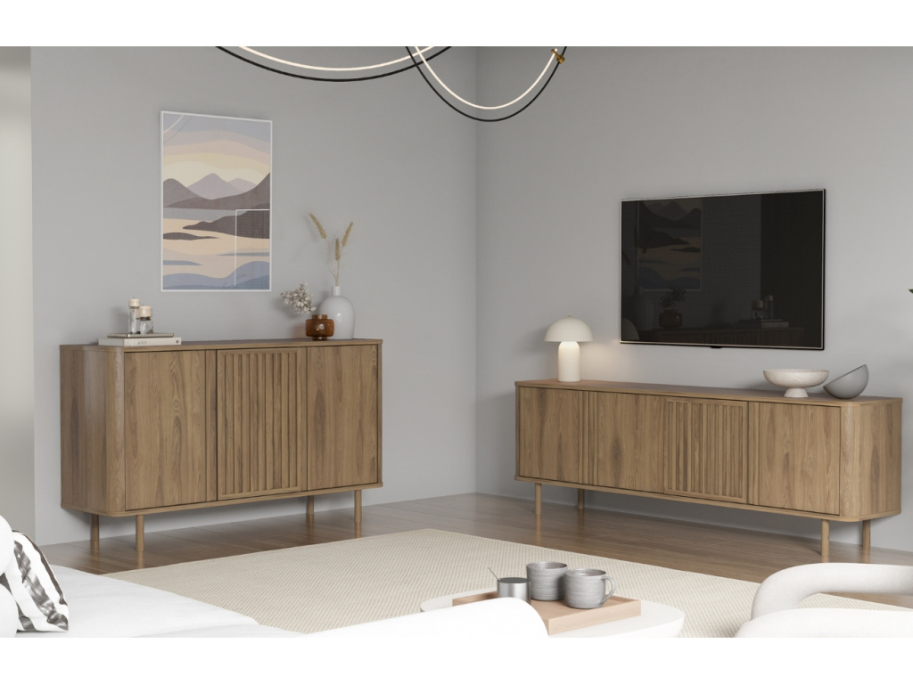 TV stolek Salma od značky Marckeric přináší harmonii přírody a elegance díky věrné kresbě dubového dekoru. Středová dvířka s jemným vertikálním reliéfem dodávají nábytku výraz a rytmus, aniž by rušily jeho čistý vzhled. Za zavřenými dvířky se ukrývá velkorysý úložný prostor, který pomůže udržet váš domov v dokonalém pořádku. V kolekci Salma kromě TV stolku najdete také tři varianty komod, které spolu krásně ladí.