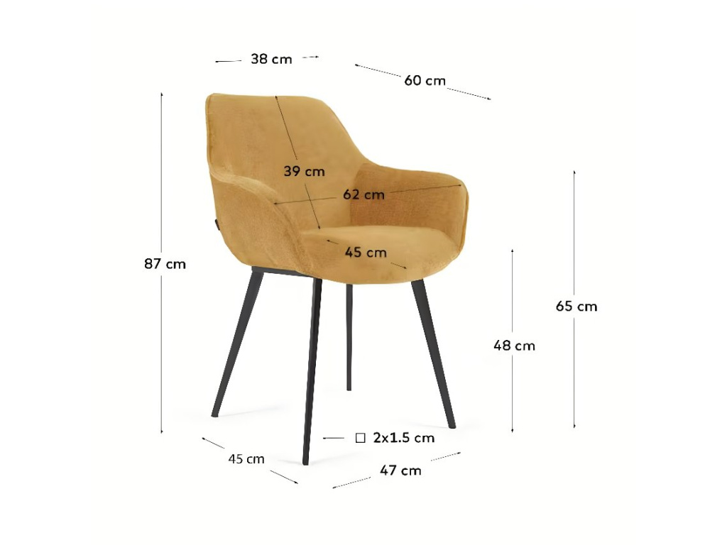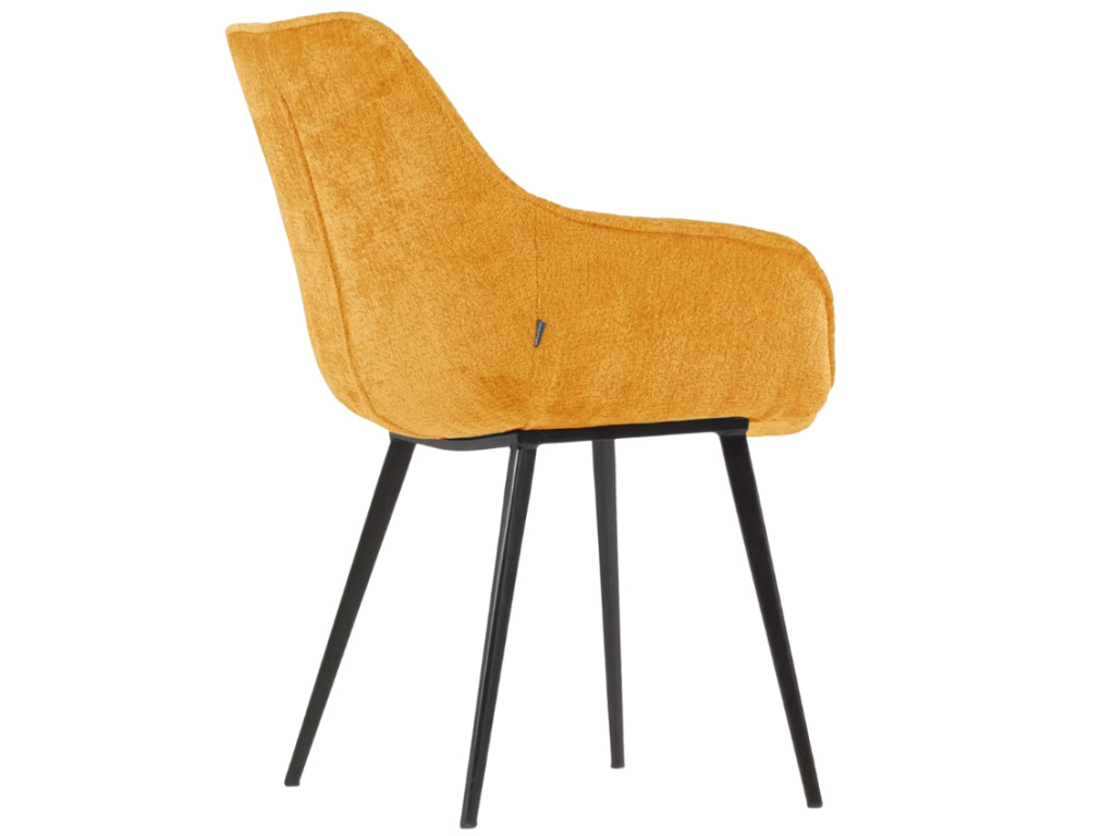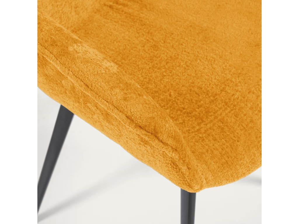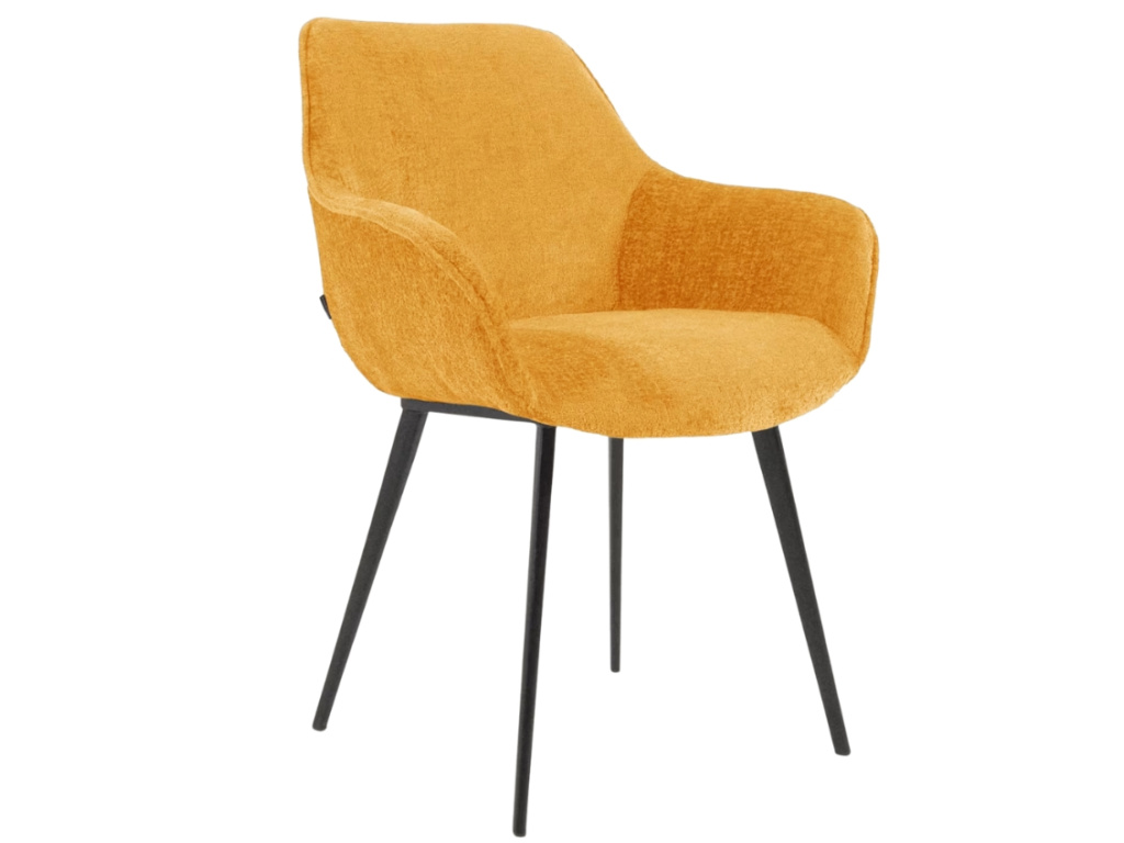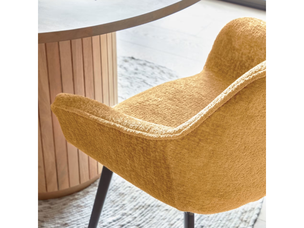 Židle Amira v hořčicovém odstínu je přesně ten typ designového kousku, který vnese do interiéru šmrnc a charakter. Její čalounění z jemně strukturované žinylky působí na dotek i pohled mimořádně příjemně, zatímco štíhlá kovová podnož s černou povrchovou úpravou dodává celku lehkost a moderní eleganci. Sedák s vyššími područkami vás obejme a nabídne pohodlí, které oceníte jak u jídelního stolu, tak při delším posezení v pracovním koutku nebo u toaletního stolku.