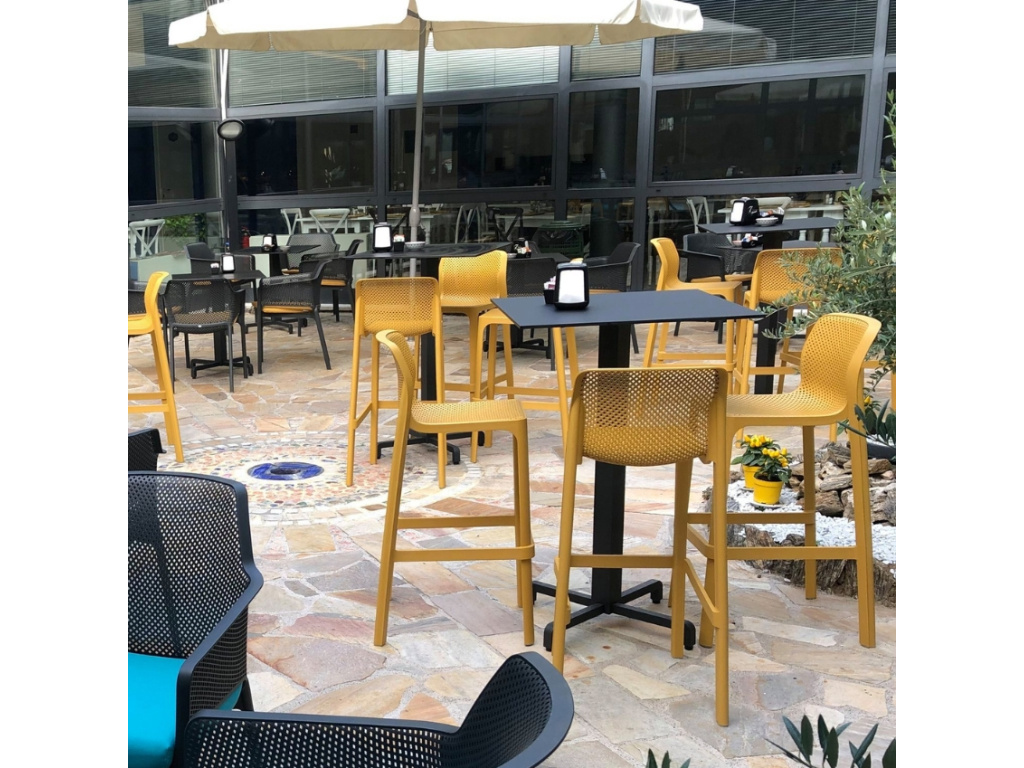 Díky použitému odolnému materiálu oceníte moderní zahradní barovou židli Net nejen v interiéru, ale také na vaší terase či zahradě. Jednoduché barevné provedení a působivý design dělá z židle nadčasový kousek, který rozhodně neomrzí. Je dostupná v několika barevných variantách a doplnit ji můžete nábytkem ze stejné kolekce. Užívejte si komfort a styl barové židle Net jak u vás doma, tak i v komerčních prostorech.