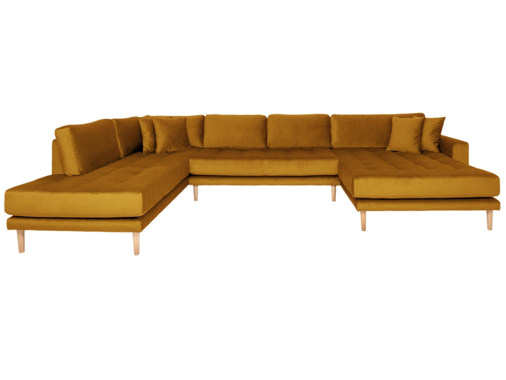 Rohová pohovka Limo ve tvaru "U" od značky Nordic Living bude perfektní volbou do prostorných obývacích pokojů. Mnohočetné rodiny jistě ocení velkorysé rozměry a dostatečný prostor pro každého jejího člena. Díky své výrazné žluté barvě a sametové látce se Limo stane dominantou interiérů zařízených v moderním a glamour stylu.