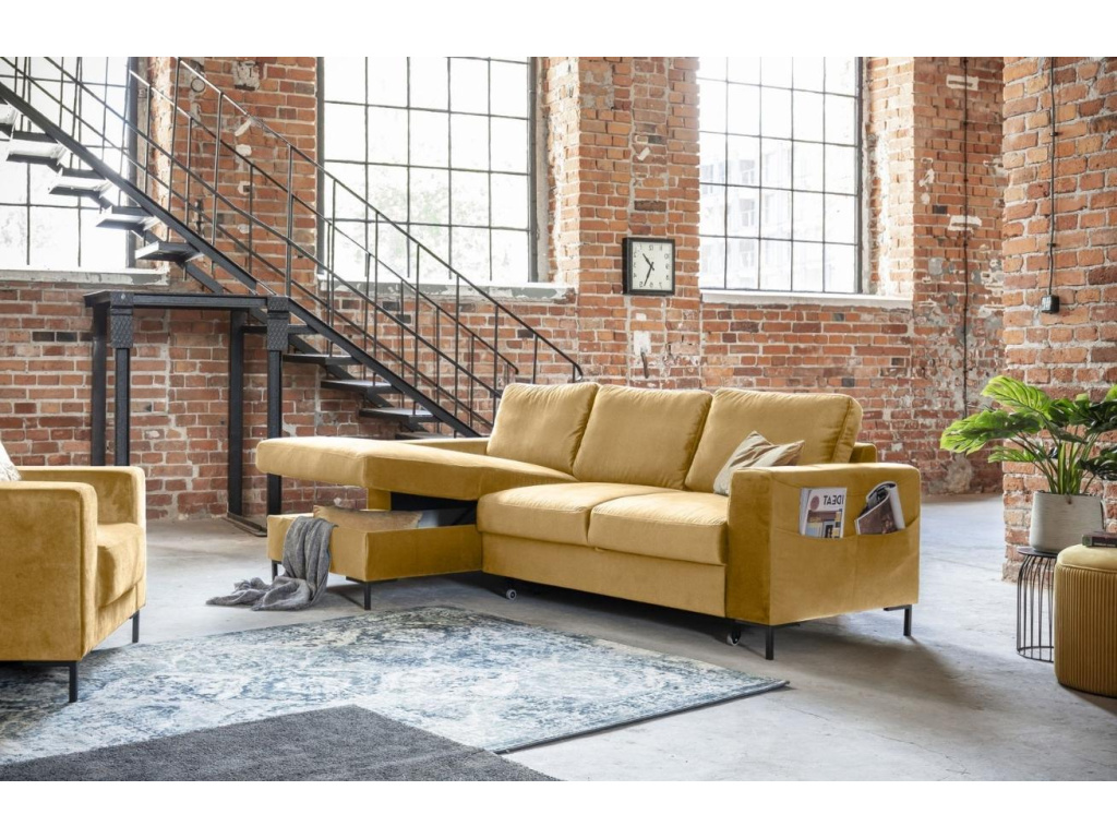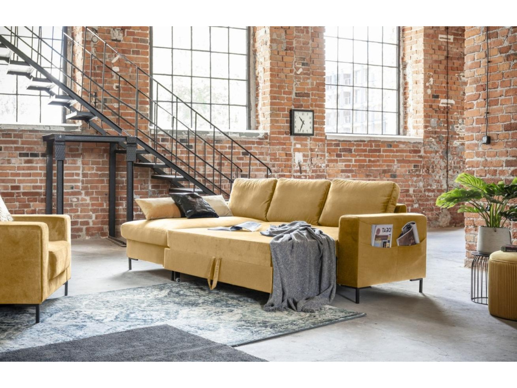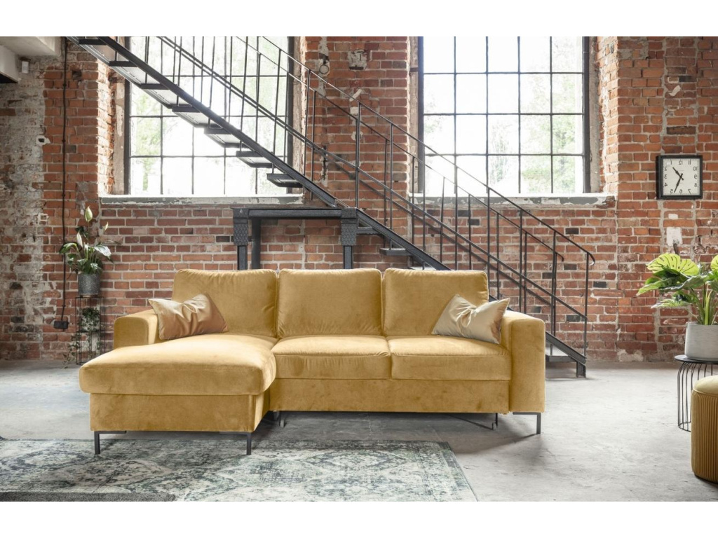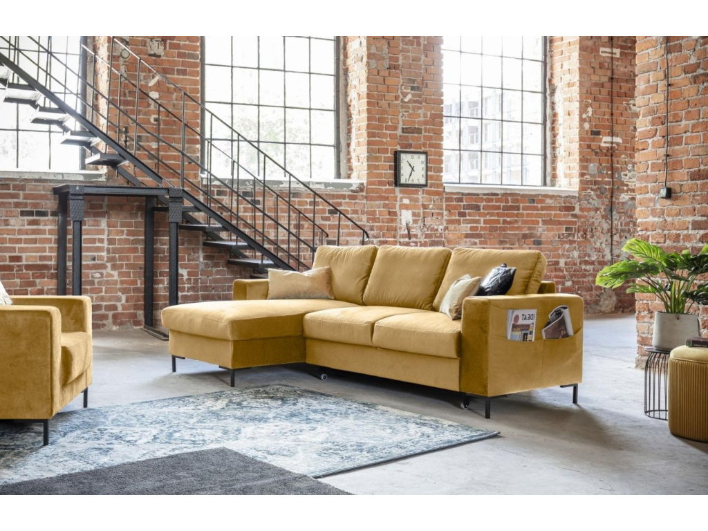 Rohová rozkládací pohovka Lofty Lilly od značky Miuform, spojuje funkčnost postele a pohovky v jednom nádherném designu. Lofty Lilly v sobě snoubí to nejlepší z obou světů, aniž by to bylo na úkor vzhledu a kvality. Krásné sametové čalounění v hořčicově žluté barvě s elegantními, hladkými liniemi je skvělým doplňkem do moderní domácnosti. Tento výjimečný kus nábytku je vyroben tak, aby vyhovoval vašim potřebám a poskytl nejen pohodlné posezení, ale také ubytoval vaše hosty s další spací plochou jednoduchým vysunutím lůžka. Vyberte si i vy tu pravou z řady Lofty Lilly.