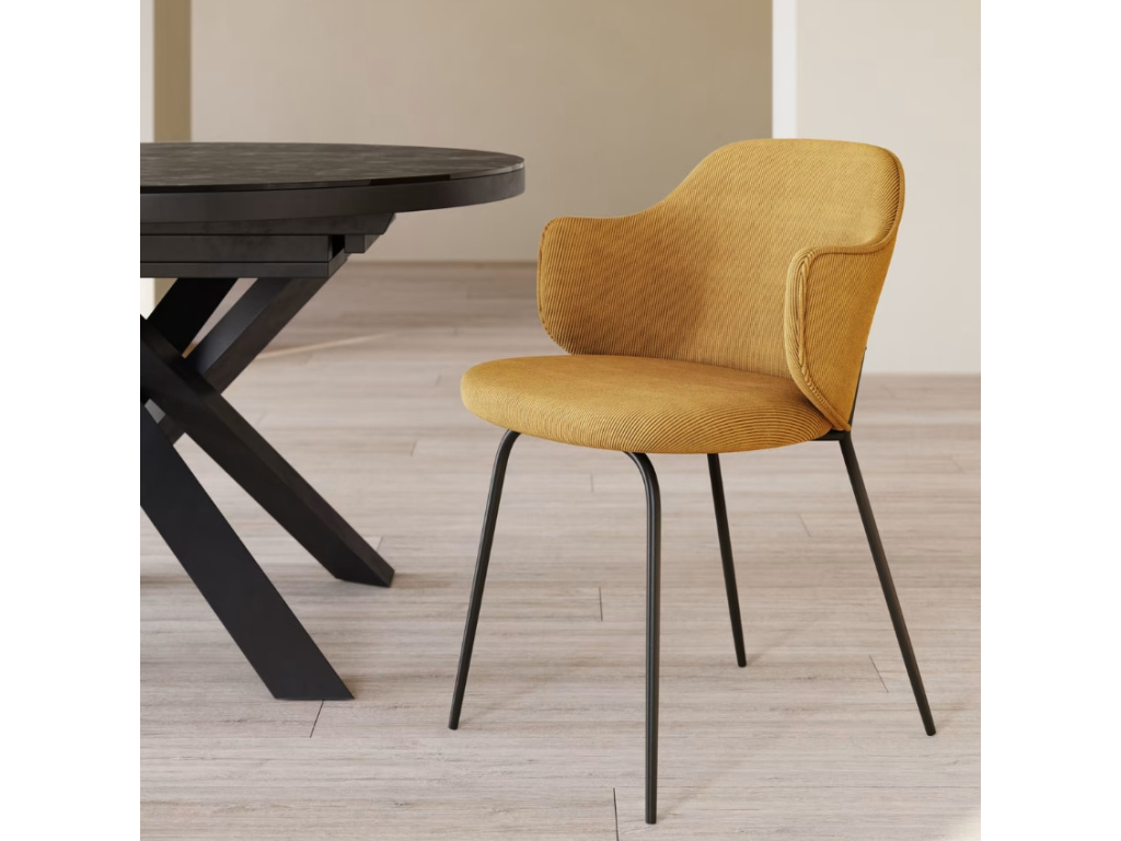 Dopřejte si u stolování pohodlí, které si zasloužíte. Jídelní židle Kave Home Yunia bude perfektním společníkem, kterého si zamilujete na první posazení! Prostorné opěradlo, elegantní područky a příjemné žinylkové čalounění - to je dokonalá kombinace. Manšestr navíc přinese do interiéru hřejivost a útulnost. Yunia se skvěle hodí do boho interiérů i do interiérů tmavších barev.