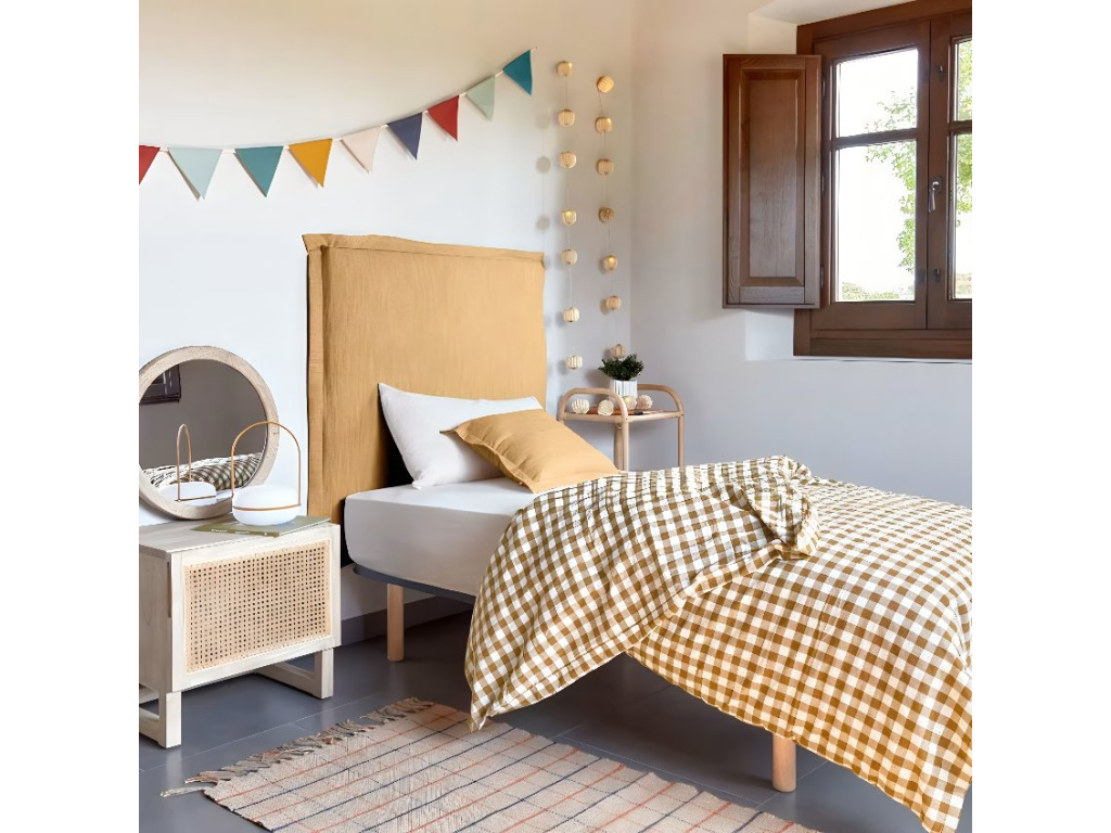 Čelo k posteli Kave Home Tanit s praktickým odnímatelným potahem je dostupné v několika barevných variantách. Je vhodné pro jednolůžkové postele o šířce 90 cm – můžete díky němu snadno oživit interiér vaší ložnice a dopřát vaší posteli nový kabátek. Potah se navíc snadno udržuje v čistotě, doporučujeme studené praní nebo profesionální chemické čistění.