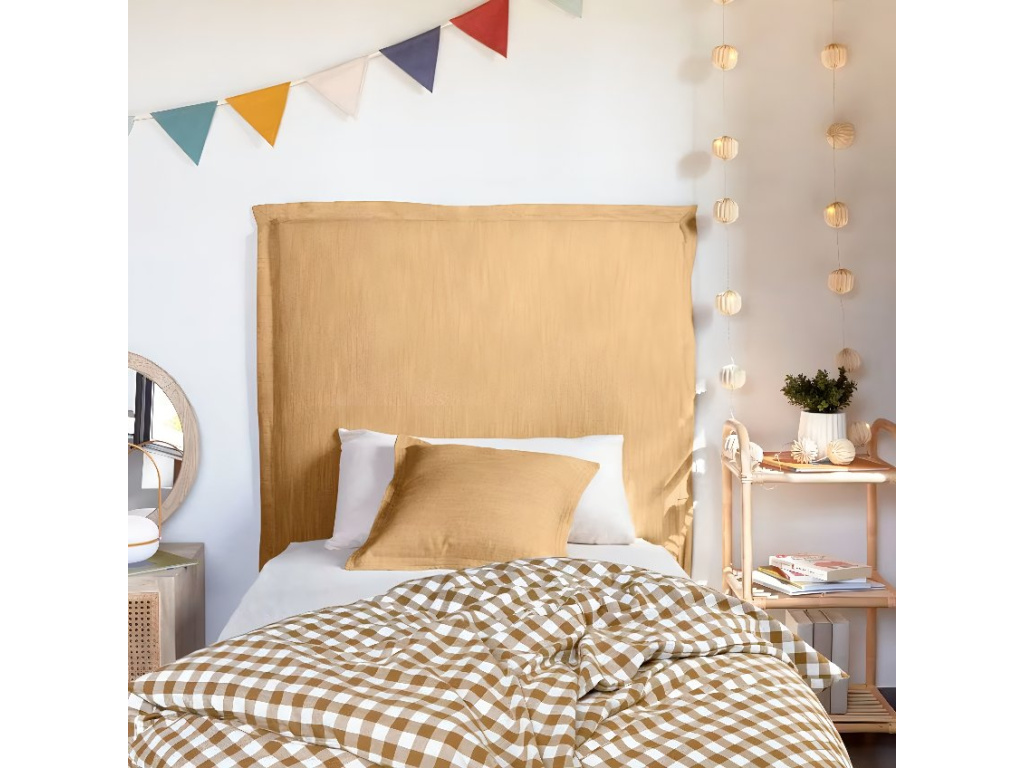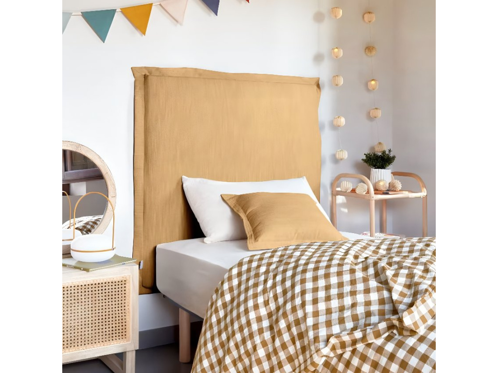 Podívám seHořčicově žluté čalouněné čelo k posteli Kave Home Tanit 90 cm