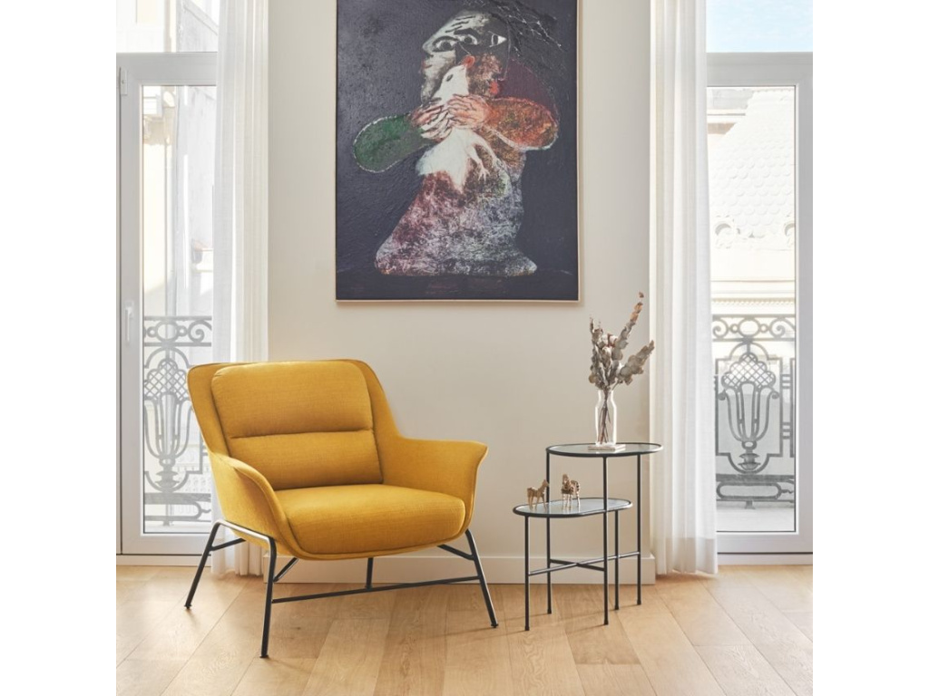 Podívám seHořčicově žluté látkové lounge křeslo Teulat Sadira