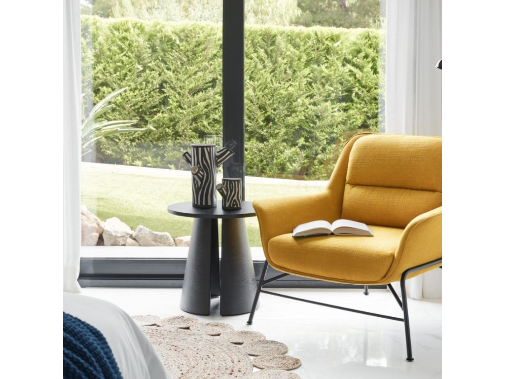 Podívám seHořčicově žluté látkové lounge křeslo Teulat Sadira