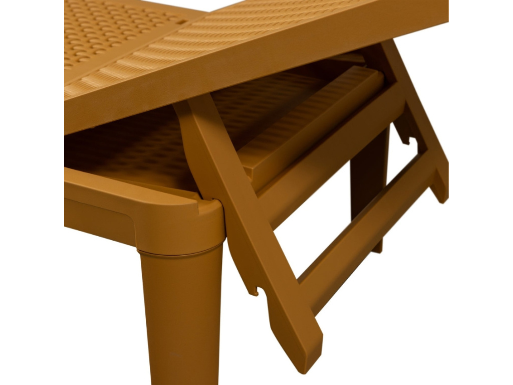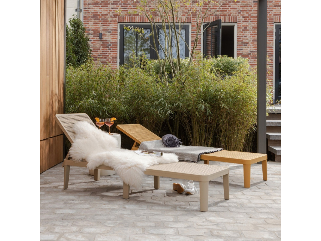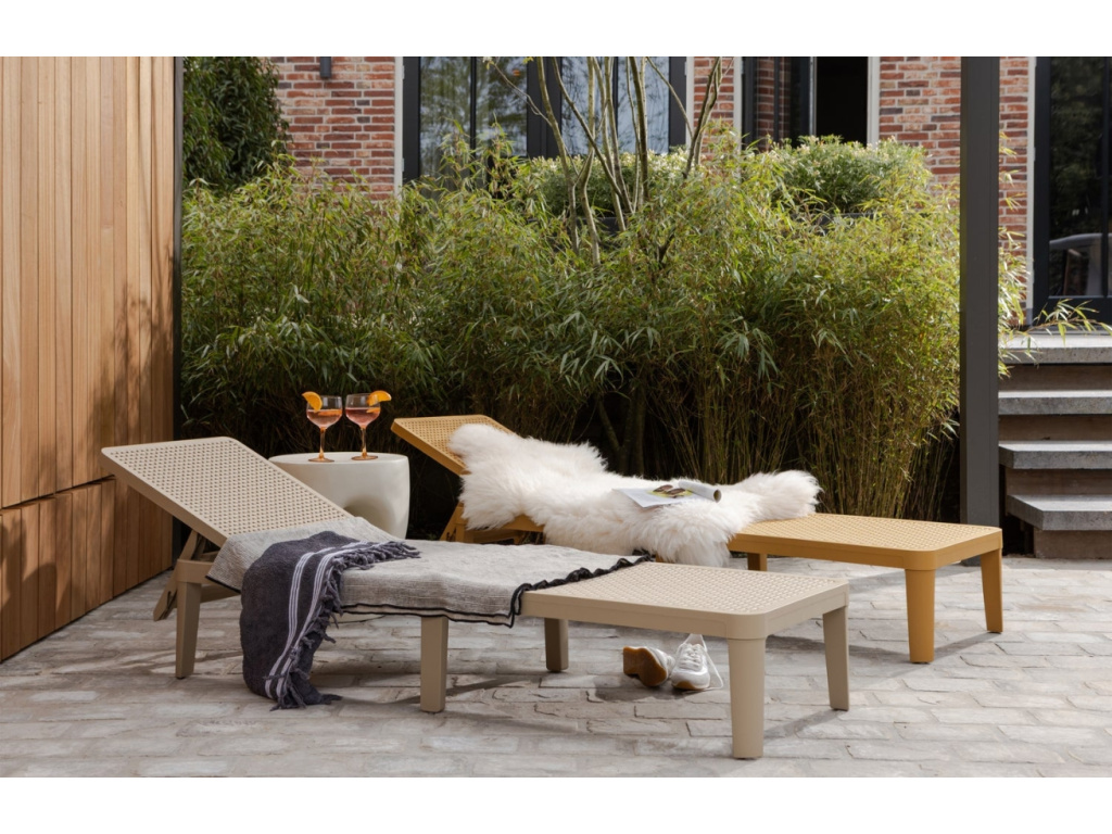 Hořčicově žluté lehátko Jimmy zaujme čistým designem s jemně zaoblenými liniemi a perforovaným vzorem. Je vyrobené z lehkého, ale mimořádně odolného polypropylenu, díky čemuž se snadno přenáší i udržuje. Opěrku hlavy lze nastavit do čtyř poloh pro maximální pohodlí při relaxaci. V kolekci Jimmy najdete dvě nadčasové barevné varianty.