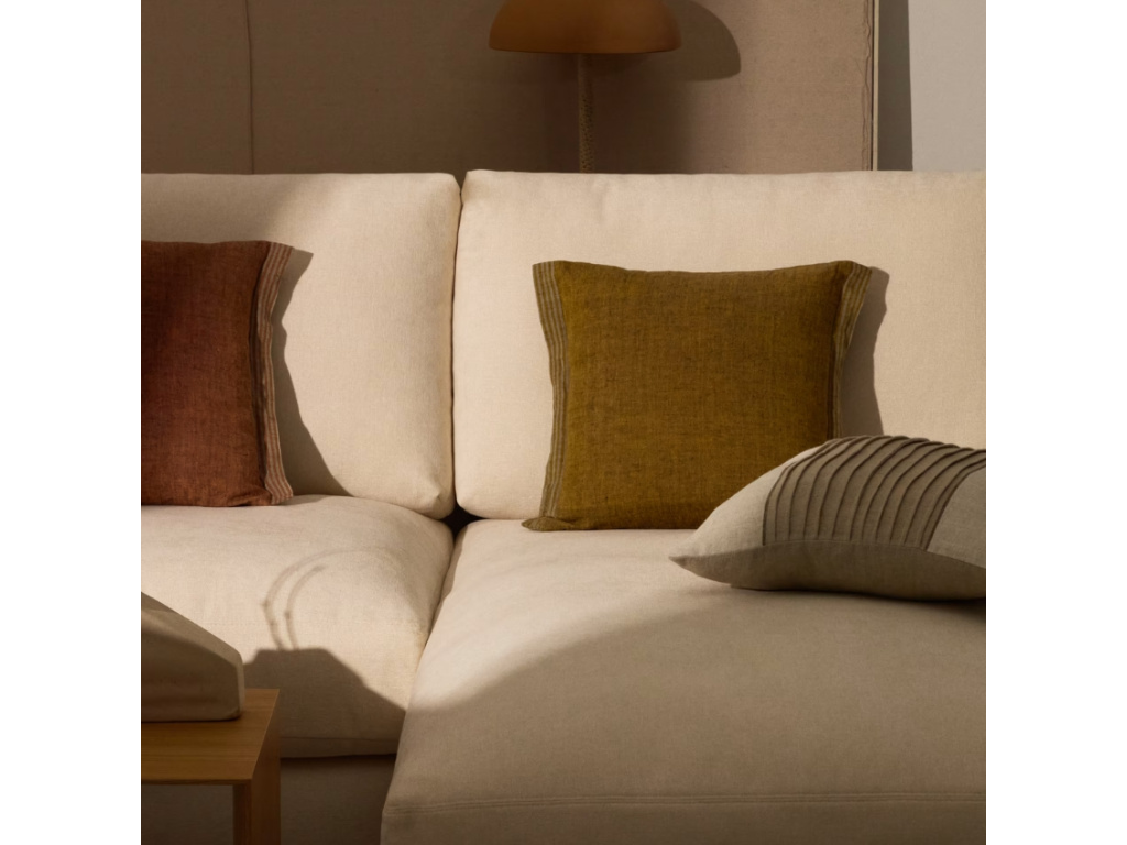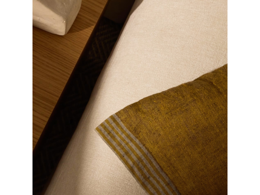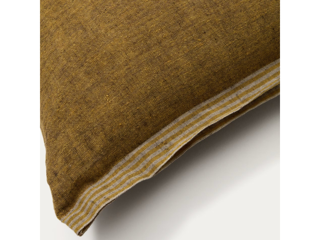 Dodejte svému interiéru svěží akcent s povlakem na polštář Niven. Je vyroben ze 100% lnu, který si získá srdce všech milovníků přírodních materiálů. Hořčicově žlutý tón doplňují decentní postranní pruhy, které dodávají celku nenucený šmrnc a pocit uvolněné elegance. Niven je ideální pro ty, kdo hledají kombinaci komfortu, kvality a designu s osobitým výrazem. Perfektně se hodí jak na pohovku, tak do ložnice – a v kombinaci s dalšími lněnými kousky vytvoří harmonický a přesto živý celek.