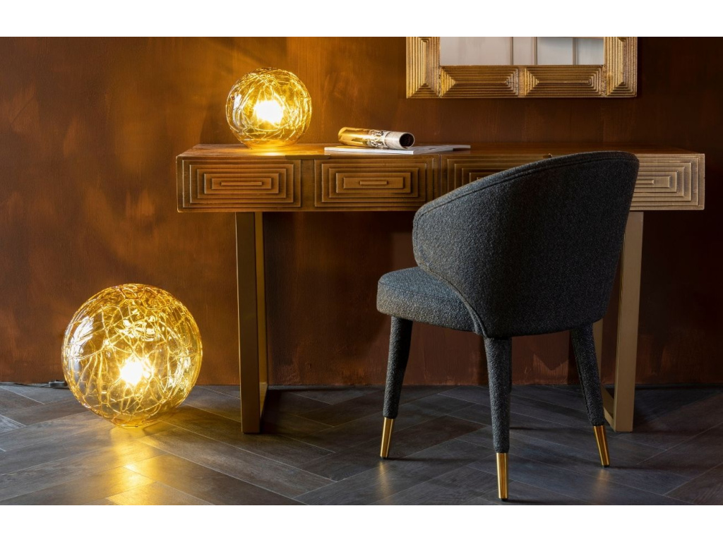 Designový unikát. Přesně tak by se dala definovat stolní lampa DUTCHBONE LUNE. Na první pohled zaujme svým kulatým tvarem, kterou doplňují jemné žilky po celém stínidle. Stínidlo je vyrobeno ze skla v krásné jantarově zlaté barvě, díky čemuž světlo získává jemný retro nádech. Stolní lampa Lune je výrazným designovým kouskem, který doladí moderní i klasické interiéry díky svému nadčasovému vzhledu. Lampu lze použít jako stolní či jako volně stojící lampu.
