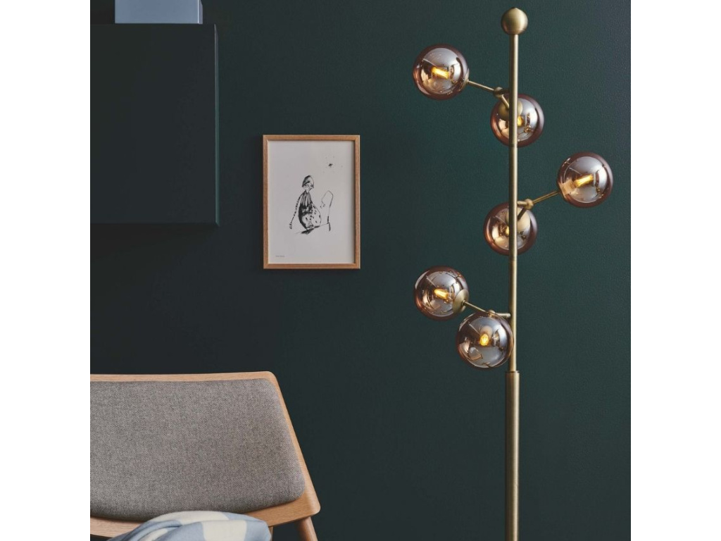 Elegantní štíhlá stojací lampa Atom značky Halo Design na první pohled zaujme svým jedinečným designem. Jantarově hnědá skleněná stínidla jsou umístěna na kovových ramenech, která jsou pohyblivá. Díky nim lze lampu upravit přesně podle vašich představ a osvětlení tak získá na výjimečnosti a originalitě. Lampa Atom je k dispozici také v kouřově šedé a opálově bílé barvě. Skvěle vynikne v moderních interiérech komerčních i nekomerčních prostor.