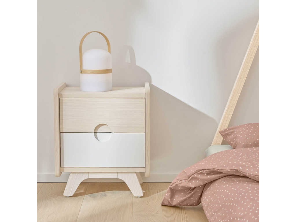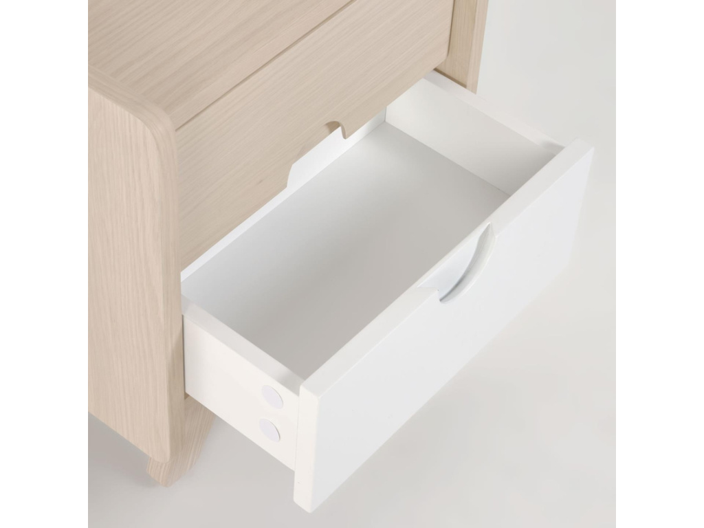 Noční stolek si zamilujete již na první pohled. Kave Home Nunila je odraz čistého minimalismu a vnese do vašeho domova útulnou atmosféru. Stolek je vyroben z jasanové dýhy a v kombinaci s bíle lakovaným MDF dodává stolku atraktivitu a eleganci. Praktickou součástí jsou 2 prostorné zásuvky, kam pohodlně uložíte váš inventář. Stolek se skvěle hodí do moderních skandinávských interiérů. Dolaďte dětský pokoj s dalšími produkty ze série Nunila.