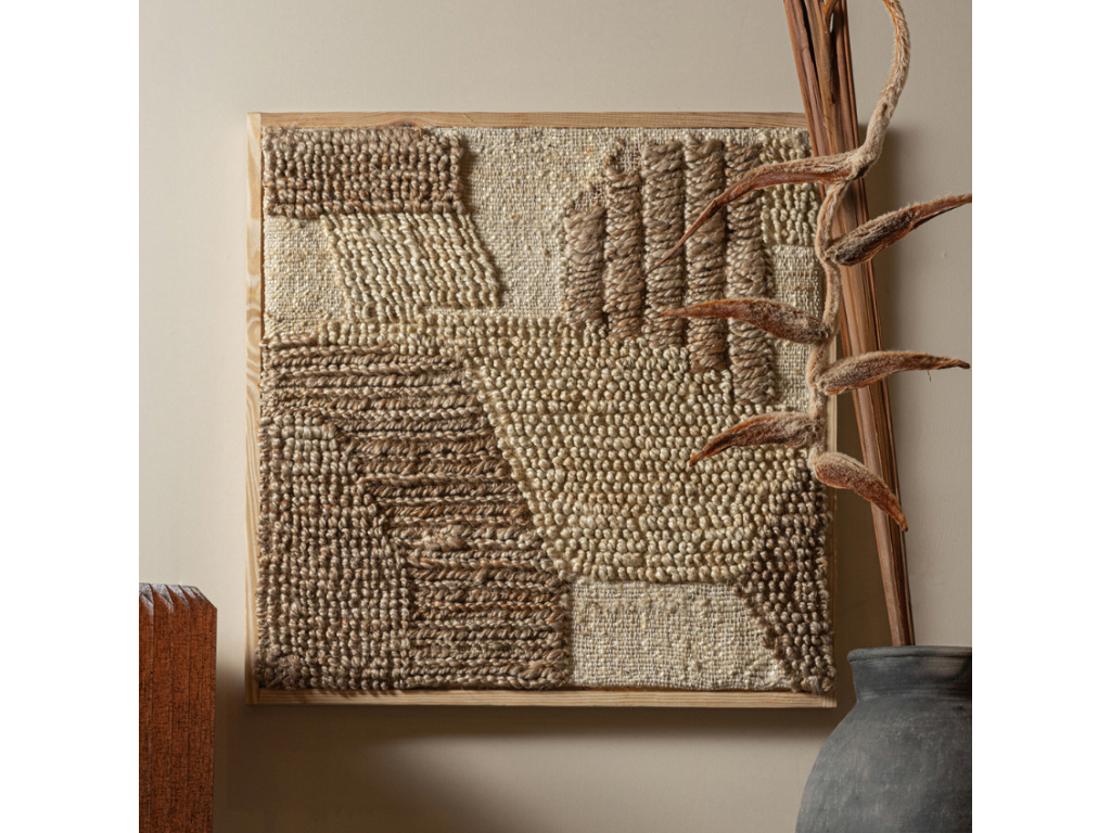 Oku líbivý obraz z kombinace bavlněného a jutového vlákna nejen upoutá pozornost vašich návštěv, ale také pomůže s akustikou v místnosti. Umělecký kousek Pecks od značky Hoorns je vyroben podobnou technologií, jakou se vyrábí koberce, díky čemuž disponuje pevností a odolností. Svojí přítomností místnost ozvláštní a umocní pocit domova – nikdo nemá rád holé zdi. Díky poutkům na zadní straně lze obraz umístit na zeď, nabízí se ale také varianta prostého opření na polici, odkládací stolek či jiné vhodné místo. Něco takového se jen tak nevidí!