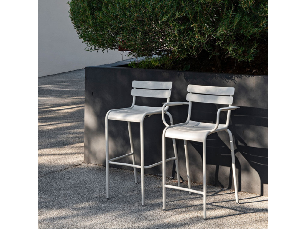 Tato barová židle francouzské značky Fermob pochází z řady Luxembourg, která je inspirovaná ikonickým zahradním sezením v pařížských parcích. Vyrábí se z prvotřídních materiálů a je testována tak, aby splňovala standardy kvality evropských norem (NF EN 581-1 a NF EN 581-2). Ergonomický tvar sedáku a opěrky společně s pohodlnými područkami zaručují komfort, lehká hliníková konstrukce zas snadné přenášení. Možnost stohování vám ušetří místo v případě delšího nepoužívání. Exkluzivní systém antikorozní úpravy pro venkovní použití a anti-UV práškový lak (standardizované testy AFNOR) dělá ze židle jasnou volbu pro jakýkoliv venkovní prostor – na zahrádku restaurace, terasu či balkon, ale stejně dobře bude vypadat i v moderních a industriálně laděných interiérech – rozhodnutí je jen na vás!