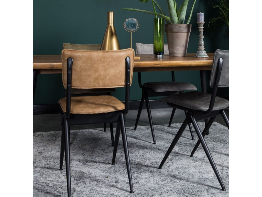 Jídelní židle Willow je moderní interpretací klasické školní židle. Industriální styl této židle je navíc podmíněn černým ocelovým rámem zajišťujícím perfektní stabilitu. Díky měkkému polstrování sedáku a opěradla čalouněných kvalitní ekokůží si můžete dopřát úžasné pohodlí i po několika hodinách sezení.
