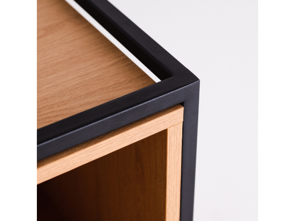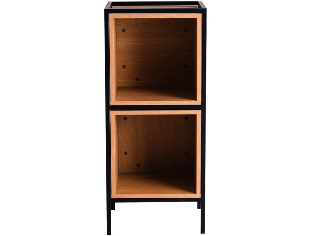 Kolekce modulárních úložných prostor Skipo představuje stylový nábytek, který si jednoduše nakombinujete podle vašich představ. Najdete v ní několik velikostí skříněk, které mohou být využity jako knihovny, komody, noční stolky nebo třeba TV stolky. Zkrátka je použijte tam, kde je potřeba! Spojení dubového dekoru a kovového rámu je nadčasové a skvěle zapadne do minimalistických i industriálních prostor. Knihovna Skipo je vysoká 102 cm a disponuje dvěma otevřenými policemi, dostupná je také v černém provedení. Využít ji ale nemusíte jen na knížky, skvěle se hodí také na různé dekorace a cennosti.