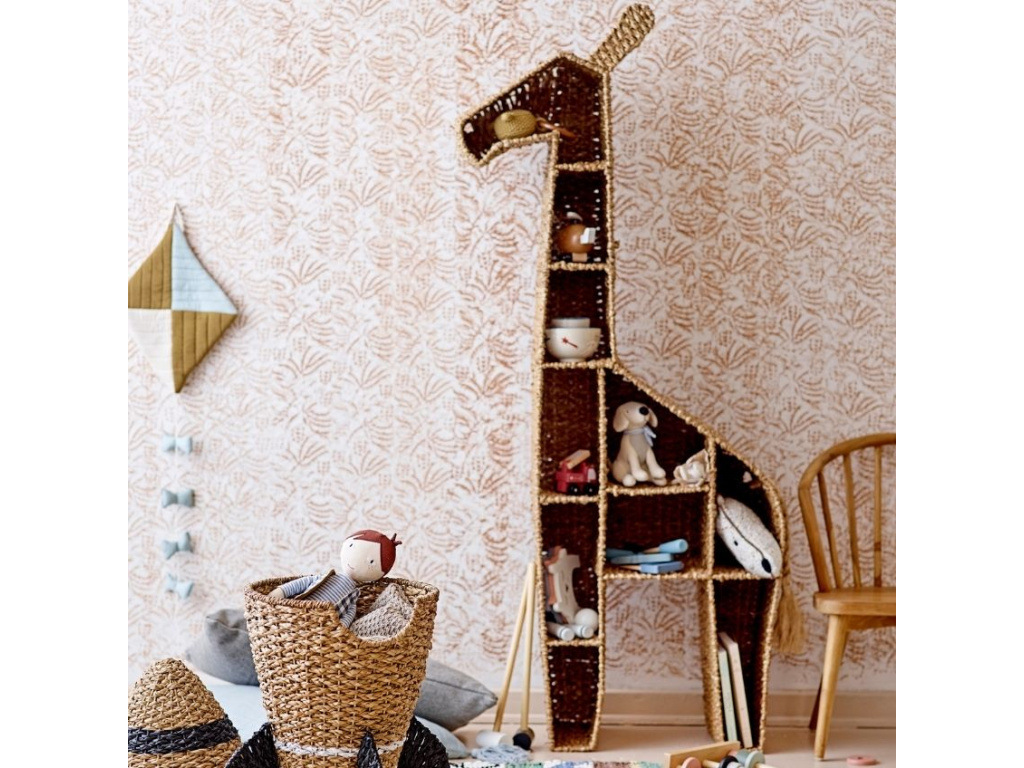 Zútulnit a ozvláštnit dětský pokoj vám pomůže originální knihovna z přírodního vlákna Bloomingville Kalu, která je navržena ve tvaru žirafy. Knihovna je rozčleněna do několika poliček různých velikostí a uložit do ní můžete kromě knížek také drobné hračky a dekorace.