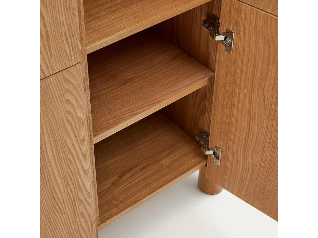 Úložné prostory ve vašem interiéru můžete vyřešit se sérií Kave Home Salaya! Najdete v ní komody, skříň, TV stolek i noční stolek – sladěná tak může být celá vaše domácnost. Elegantní zaoblené tvary společně s výraznou přírodní kresbou vybraný prostor zútulní a jen tak nevyjdou z módy. Ať už preferujete rustikální nebo scandi styl, do obou tyto designovky skvěle zapadnou. Prostorná komoda o šířce 200 cm nabídne úložný prostor v podobě 8 polic, které jsou uschovány za dvojicí dveří se soft-close zavíráním. Uschovejte do ní nádobí, knihy, dokumenty nebo oblečení – zkrátka cokoliv, co vás napadne.