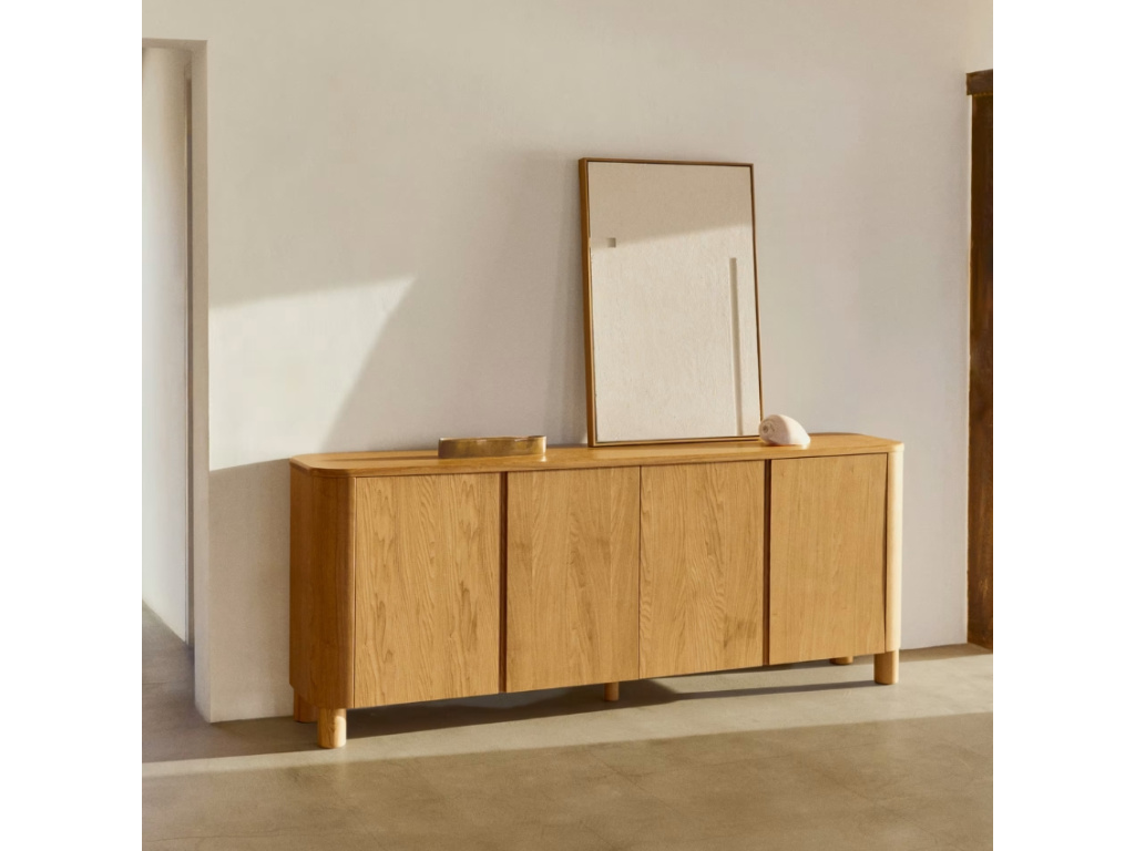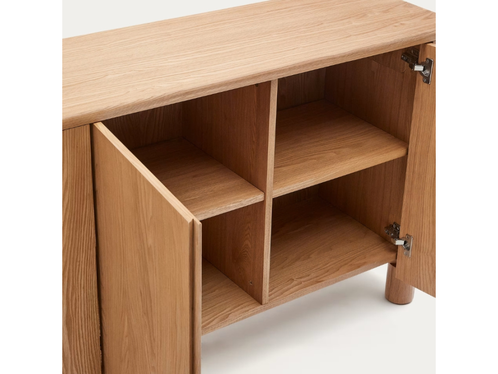 Úložné prostory ve vašem interiéru můžete vyřešit se sérií Kave Home Salaya! Najdete v ní komody, skříň, TV stolek i noční stolek – sladěná tak může být celá vaše domácnost. Elegantní zaoblené tvary společně s výraznou přírodní kresbou vybraný prostor zútulní a jen tak nevyjdou z módy. Ať už preferujete rustikální nebo scandi styl, do obou tyto designovky skvěle zapadnou. Prostorná komoda o šířce 200 cm nabídne úložný prostor v podobě 8 polic, které jsou uschovány za dvířky se soft-close zavíráním. Uschovejte do ní nádobí, knihy, dokumenty nebo oblečení – zkrátka cokoliv, co vás napadne.