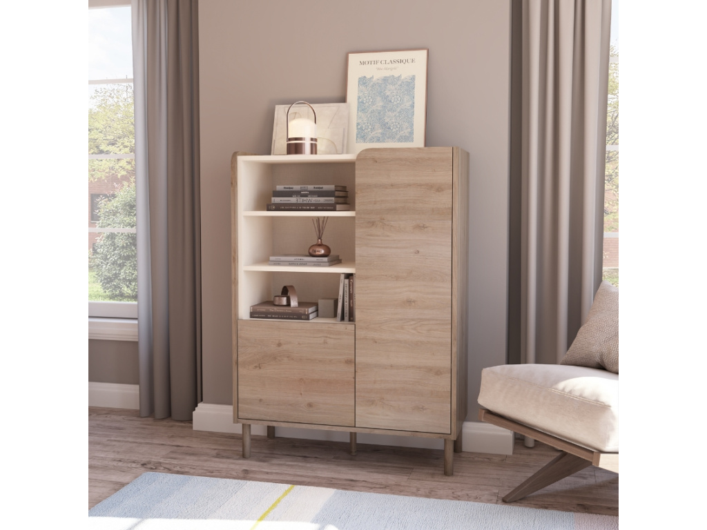 Komoda z kolekce Monza značky Marckeric v sobě spojuje čistý severský design s praktickým řešením úložného prostoru. Kombinace MDF desek v šedohnědém laku a dekoru dubu působí přirozeně a moderně zároveň, zatímco zaoblené rohy a štíhlá podnož dodávají nábytku lehkost. Nabízí členitý prostor s otevřenými policemi i prostornými uzavřenými skříňkami – ideální pro přehledné uložení všeho, co chcete mít po ruce i skryté. V kolekci Monza najdete tři varianty komod a TV stolek.