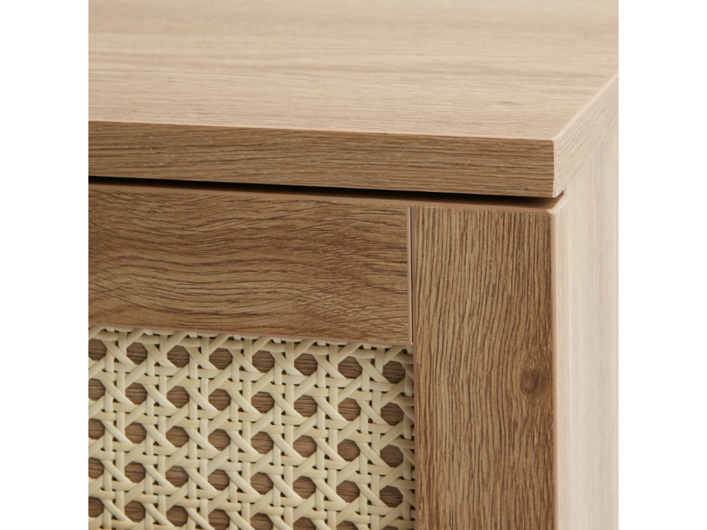 Dostatečný úložný prostor je nezbytností každé domácnosti a získat jej můžete díky komodě Pensacola od značky Unique Furniture, která nabízí praktický úložný prostor v podobě třech zásuvek. Podnož z černě lakovaného kovu nejen že dodává produktu na eleganci, ale skvěle se hodí pro domácnosti s robotickým vysavačem. Dominantou komody jsou dvířka, která vás zaujmou především výplní z umělého ratanu ve světlém provedení, který navozuje příjemný kontrast s ostatními materiály. Pokud hledáte neobyčejný kousek do vašeho interiéru, komoda Pensacola vás rozhodně nezklame. V sérii Pensacola najdete více designově sladěných produktů, které se budou v interiéru skvěle doplňovat.