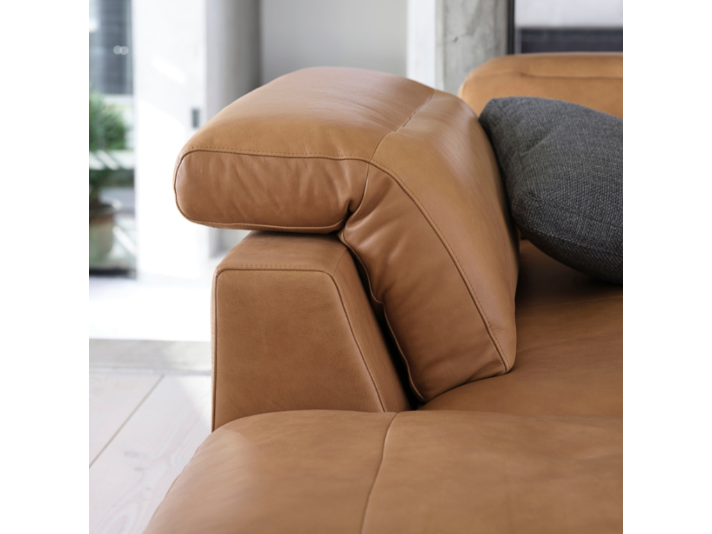 Oživte svůj domov unikátní koženou pohovkou Voluzzi od značky Flexlux. Ve vašem obývacím pokoji se stane stylovým kusem nábytku. Její rohový tvar vám umožní využít prostor ve vaší místnosti efektivně a zároveň do něj vnese moderní a elegantní vzhled svými oblými křivkami. Pohovka má dostatek místa pro pohodlné sezení a relaxaci pro vás i vaše hosty. Její vysoký komfort je zajištěn ručně nastavitelnými opěrkami hlavy pro dodatečnou podporu krku a zádovými pevnými polštáři, které podporují správnou polohu těla. Je čalouněná anilinovou kůží Nature v jedinečném koňakově hnědém odstínu. Pokud jste milovníci přírodní a velmi jemné kůže, Nature je pro vás skvělou volbou. Použitá kůže má velkou tloušťku, je maximálně pohodlná a dodává pohovce nejen sofistikovaný, ale také luxusní vzhled. Slaďte si svůj interiér a doplňte pohovku stejnojmennou podnožkou.
