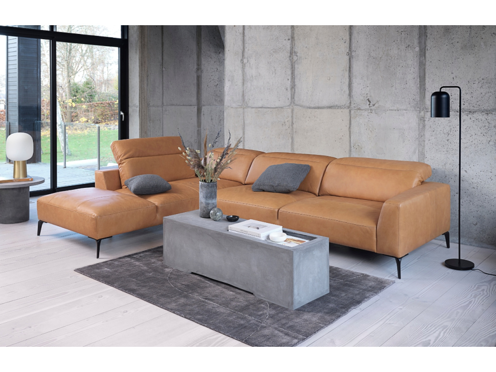 Oživte svůj domov unikátní koženou pohovkou Voluzzi od značky Flexlux. Ve vašem obývacím pokoji se stane stylovým kusem nábytku. Její rohový tvar vám umožní využít prostor ve vaší místnosti efektivně a zároveň do něj vnese moderní a elegantní vzhled svými oblými křivkami. Pohovka má dostatek místa pro pohodlné sezení a relaxaci pro vás i vaše hosty. Její vysoký komfort je zajištěn ručně nastavitelnými opěrkami hlavy pro dodatečnou podporu krku a zádovými pevnými polštáři, které podporují správnou polohu těla. Je čalouněná anilinovou kůží Nature v jedinečném koňakově hnědém odstínu. Pokud jste milovníci přírodní a velmi jemné kůže, Nature je pro vás skvělou volbou. Použitá kůže má velkou tloušťku, je maximálně pohodlná a dodává pohovce nejen sofistikovaný, ale také luxusní vzhled. Slaďte si svůj interiér a doplňte pohovku stejnojmennou podnožkou.