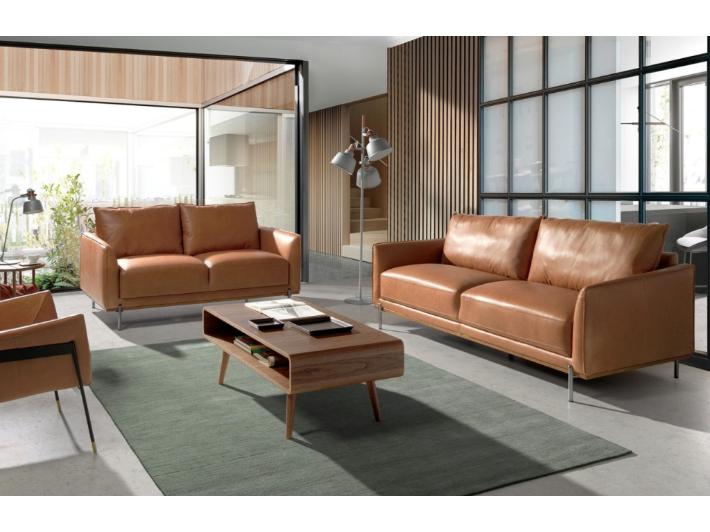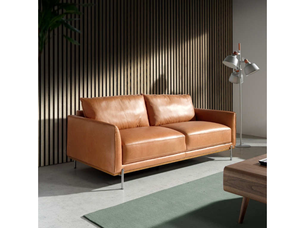 Tato hnědá kožená pohovka se stane designovým klenotem vašeho obývacího pokoje. Čalounění z prémiové hovězí kůže v koňakově hnědém odstínu dodá prostoru hřejivý a elegantní charakter. Pevná konstrukce s bukovým rámem v ořechové barvě podtrhne precizní zpracování a odolnost. Tmavá ocelová podnož pak přidá jemný industriální nádech a lehkost celému designu. Tato pohovka vám zajistí nejen pohodlí, ale i interiér jako z designového magazínu.